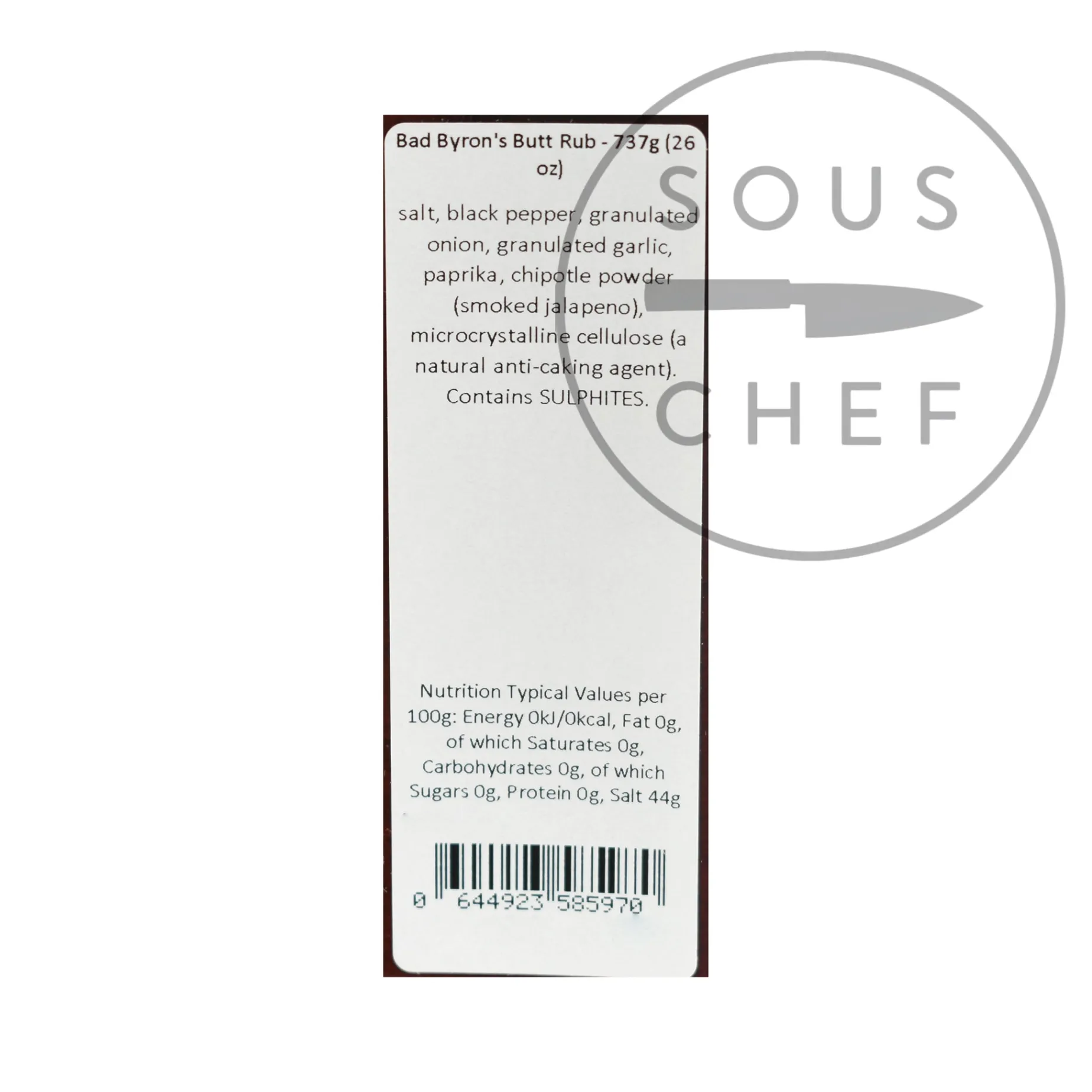 Product formulations and details may change. For the latest ingredients and allergen information always check product packaging prior to consumption. Ingredients: salt, black pepper, granulated onion, granulated garlic, paprika, chipotle powder (smoked jalapeno), anticaking agent: microcrystalline cellulose. Contains sulphites.