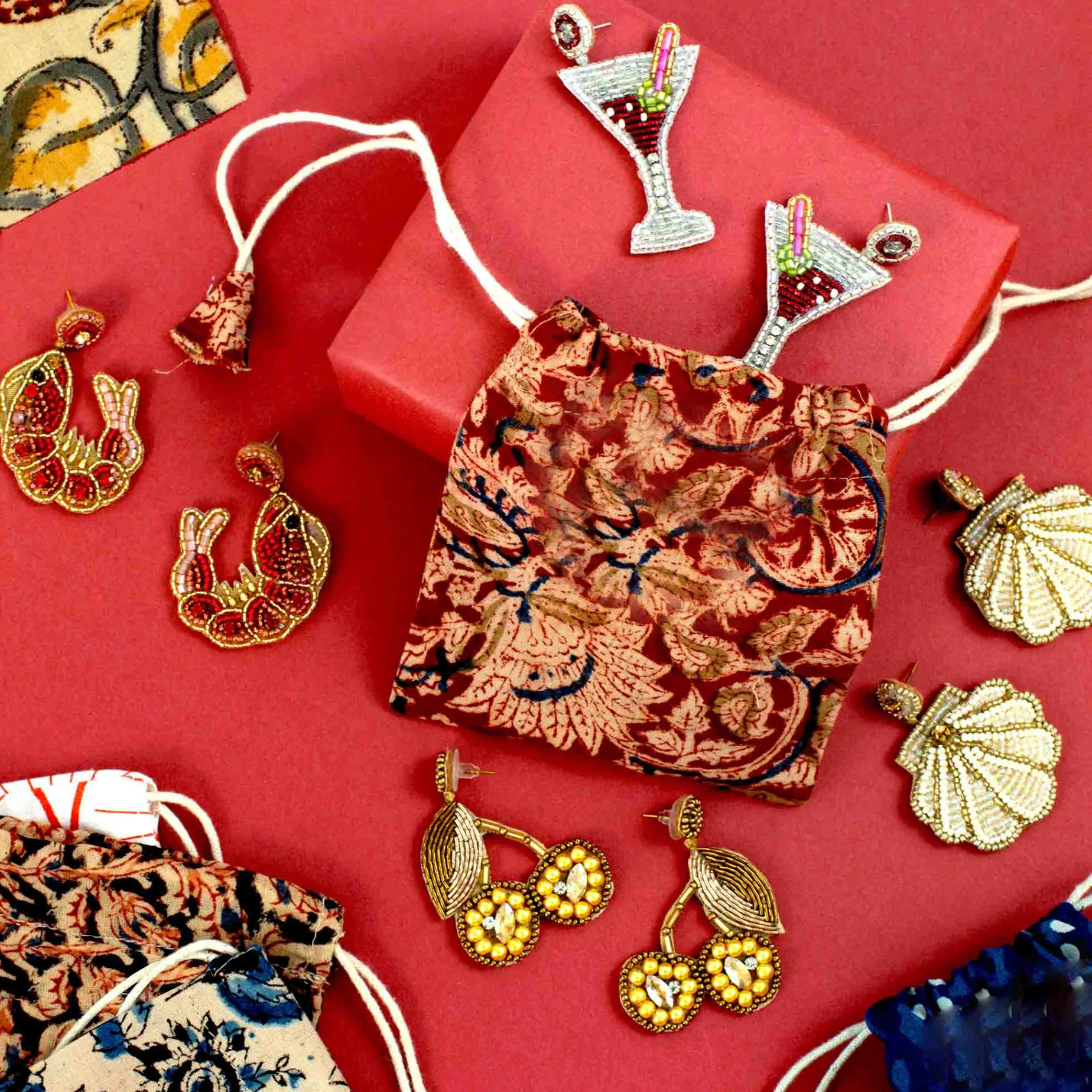 Make ours a martini with a beaded twist. The martini earrings are designed in England and handmade in India bead-by-bead. These glitzy cocktail earrings are lightweight and comfortable to wear.