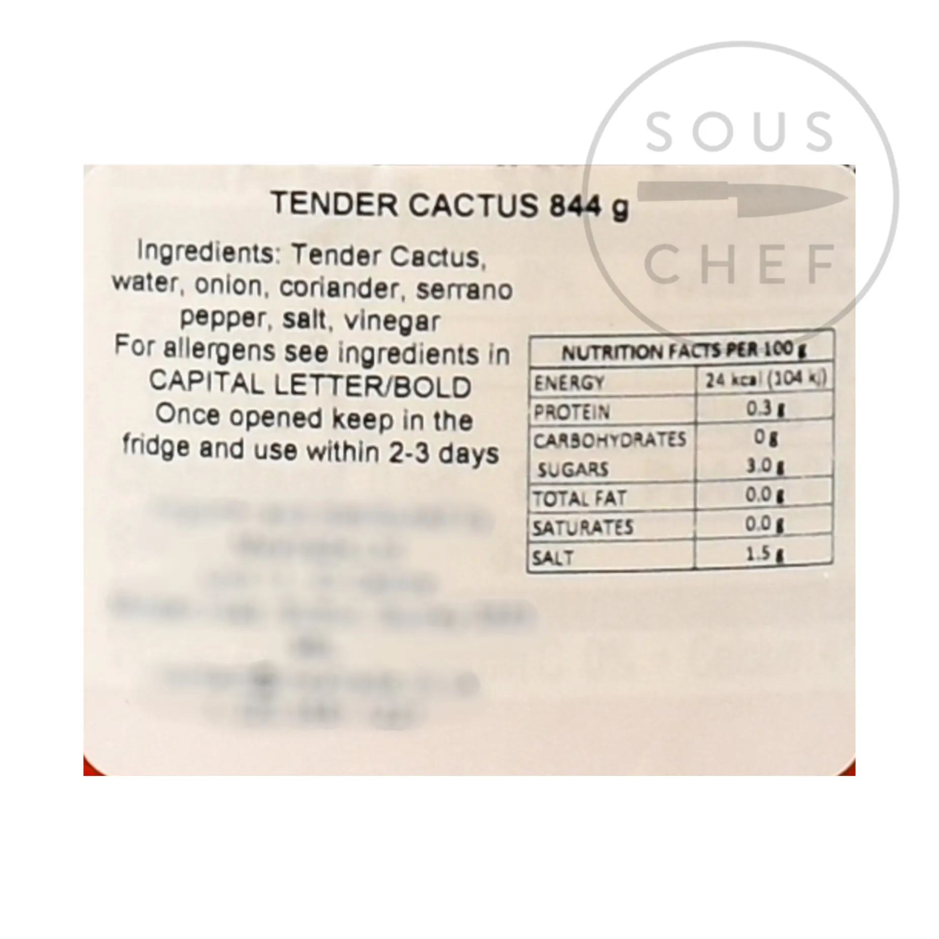 Tender cactus shoots, also known as nopales or nopalitos, are the young paddle-shaped shoots of the prickly pear cactus; carefully peeled, sliced and then cooked. La Costeña tender cactus is cooked with onion, coriander, salt and vinegar, and then mixed with Serrano peppers.