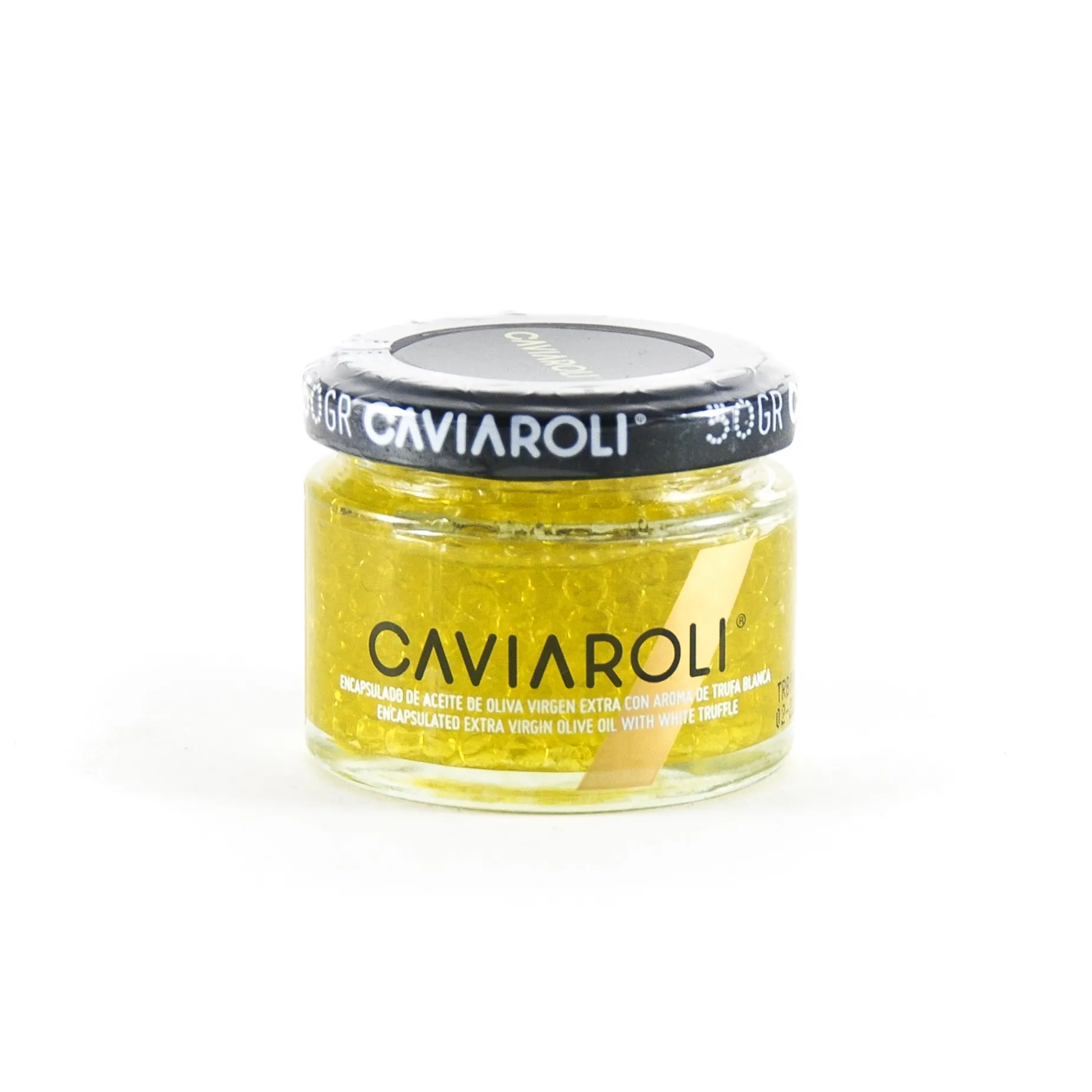 Caviaroli white truffle oil pearls are the perfect fusion of refined gastronomy and the playfulness of modernist cuisine. Scatter the pearls over a beef carpaccio or place a delicate pile in the centre of a creamy risotto to add the complex earthy, musky notes of white truffles in whole new way.