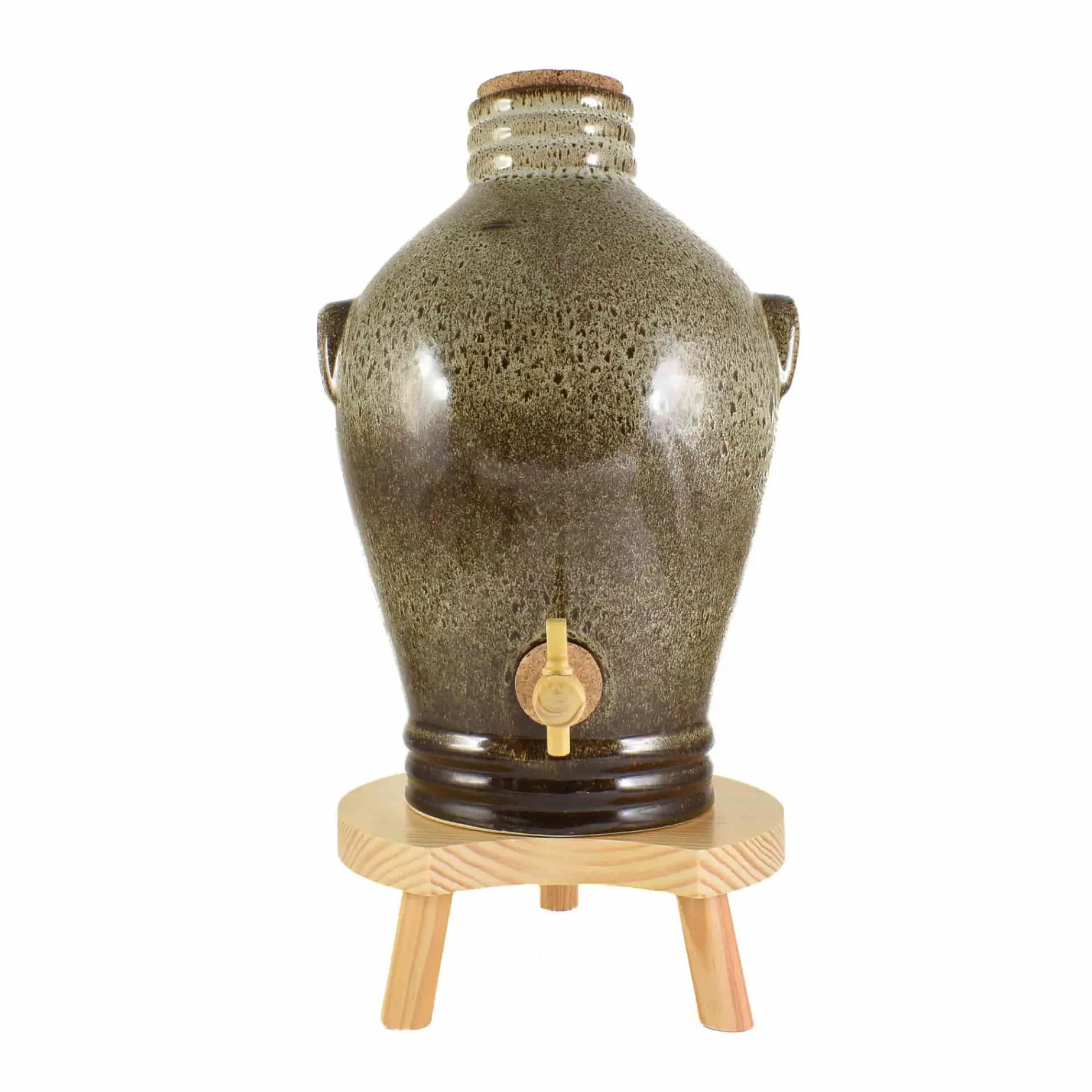 The hand-glazed traditional ‘amphora’ style vinaigrier echoes those that have been used all around the Mediterranean for hundreds of years. The curved section in the wooden stand makes it easy to fit a bottle, jar or cup under the tap. The two slim handle grips on either side mean this vinaigrier can slide into compact spaces for easy storage. It has a wooden tap to pour as much vinegar out as you need!