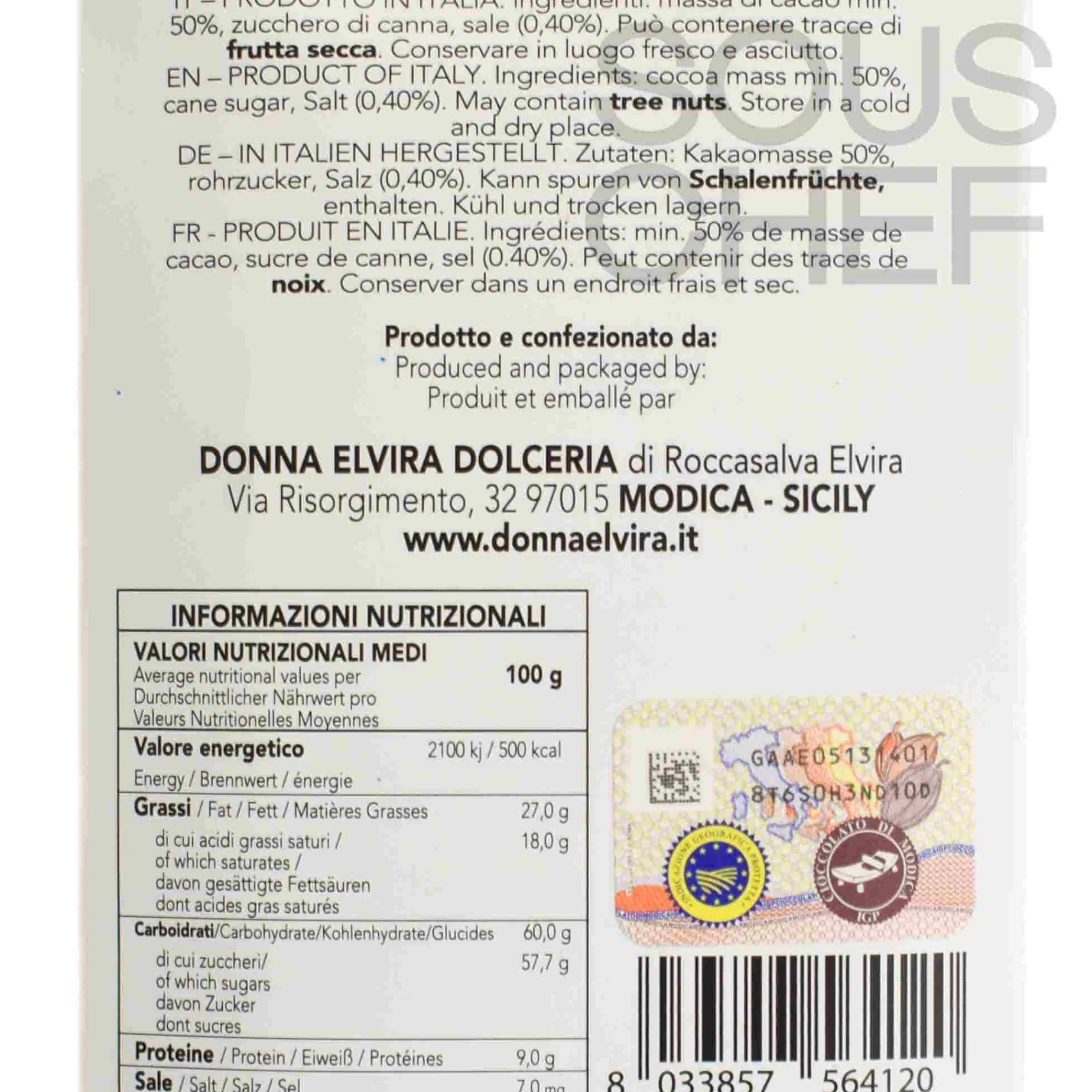 Chocolate & SweetsChocolate BarsDonna Elvira Italian Sweets & DesertsGluten Free IngredientsItalian Food & IngredientsSmall GiftsVegan Food & Ingredients