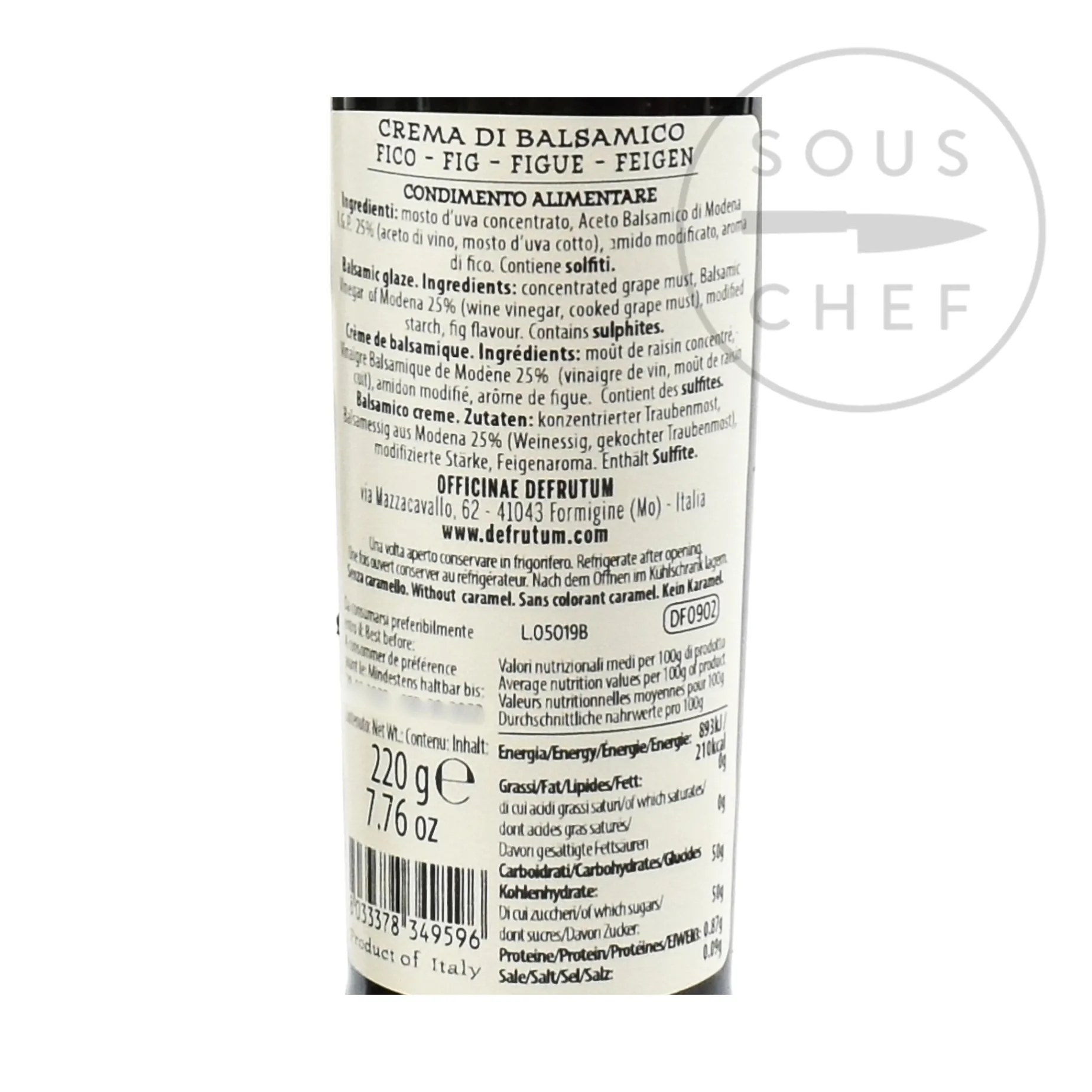 Product formulations and details may change. For the latest ingredients and allergen information always check product packaging prior to consumption. Ingredients: concentrated grape must, Balsamic Vinegar of Modena (wine vinegar, cooked grape must) (25%), modified starch, fig flavour. Contains sulphites.