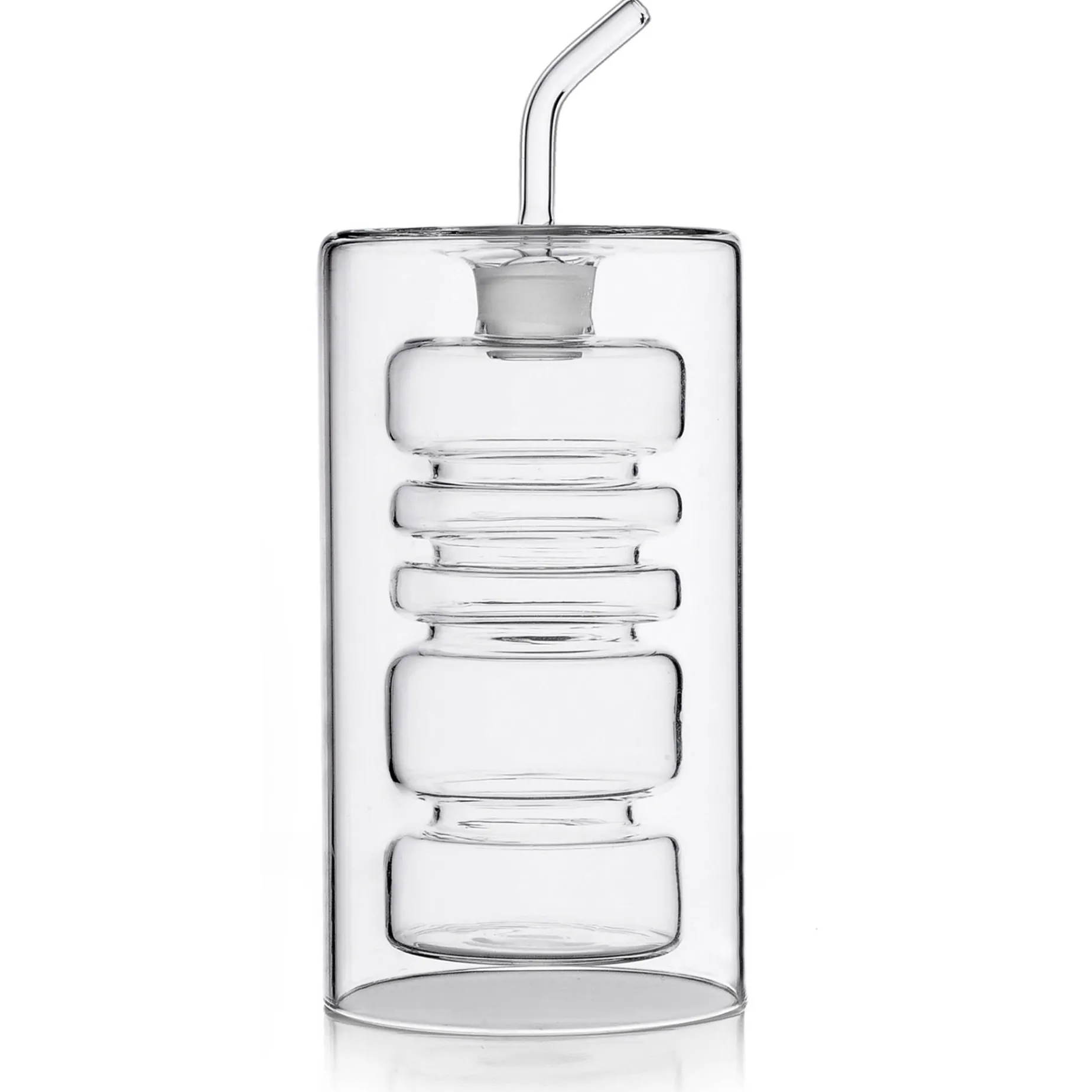 Ichendorf Milano’s large olive oil bottle elevates the way you pour oil. Crafted from 100% glass and designed in Milan, this large bottle features a ring pattern, which, when filled with olive oil, creates a stunning design. With a narrow spout, this bottle is easy to pour from and is beautiful to have on show at all times.