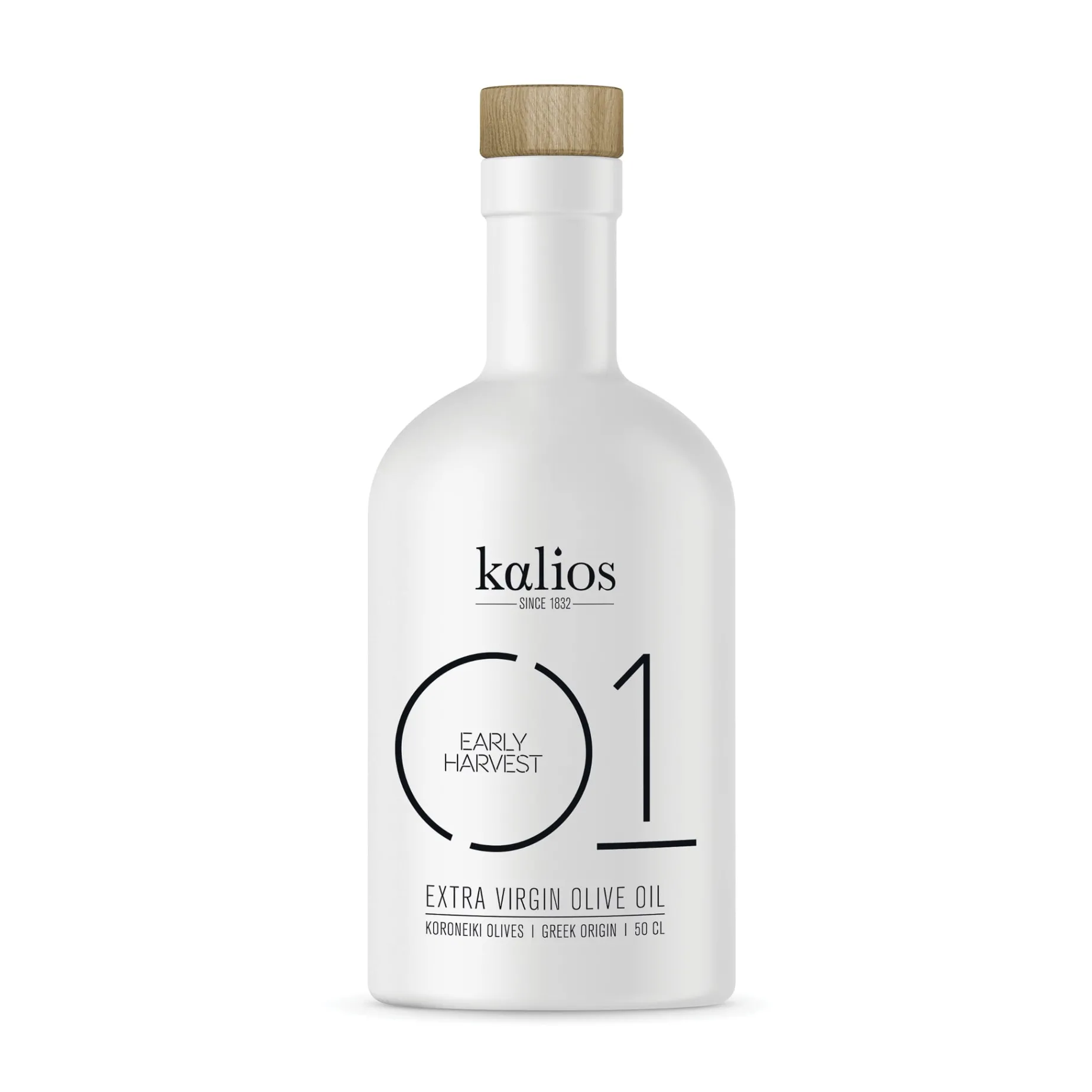 Kalios 01 Early Harvest Extra Virgin Olive Oil is available in two sizes: