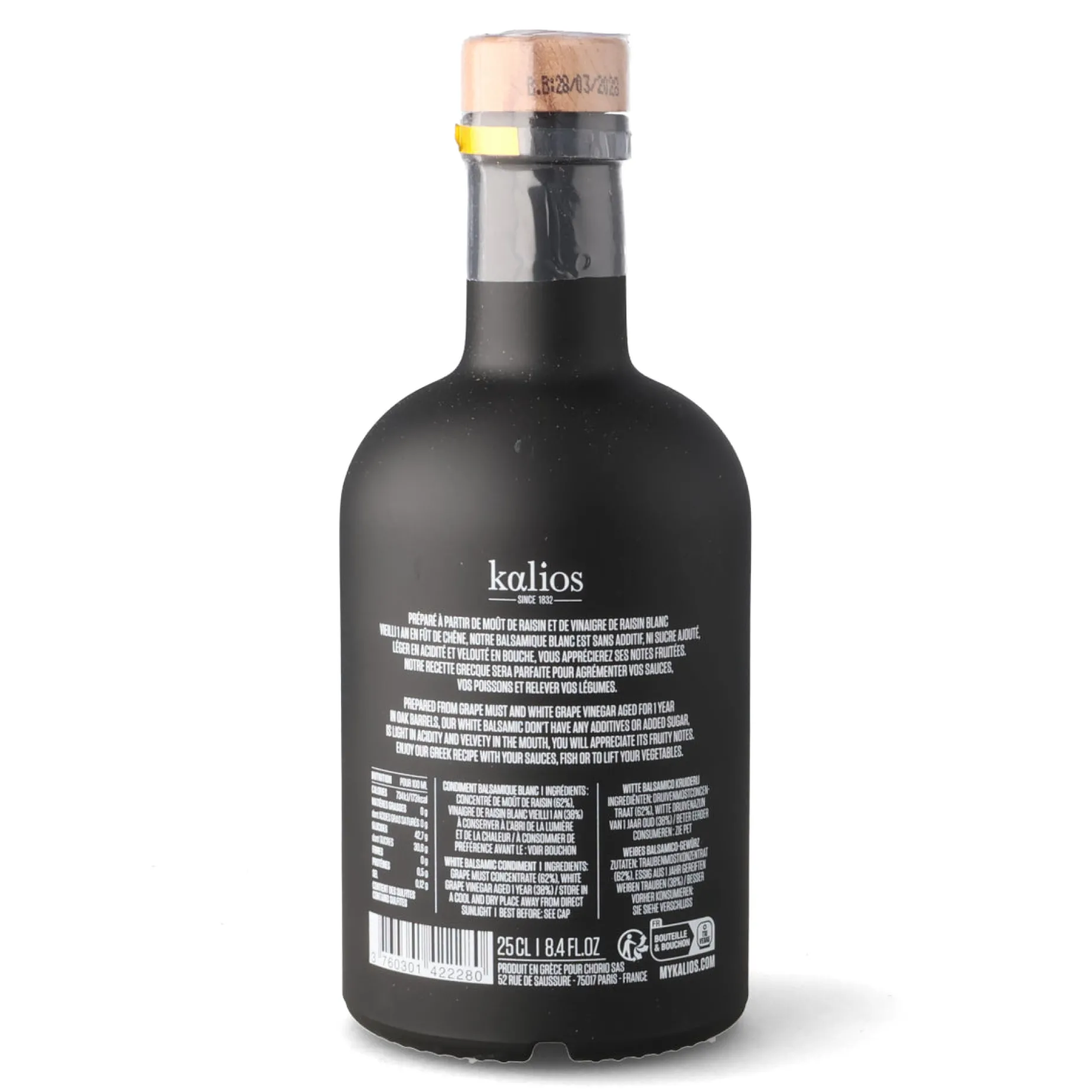 Kalios white balsamic vinegar is a tangy condiment from southern Greece. It’s lighter and sweeter than traditional balsamic. You can use it in sauces, vinaigrettes and to deglaze your pan.