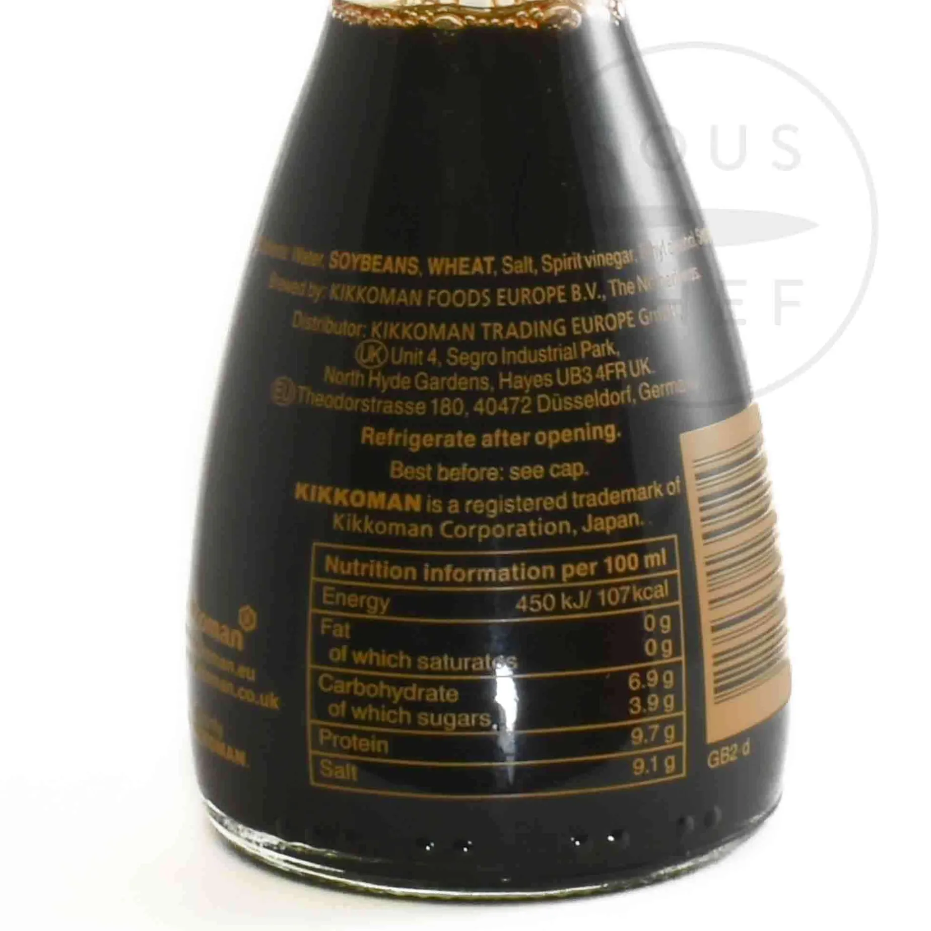 Kikkoman’s less salt soy sauce has the rich flavours of their world-renowned soy sauce with a 43% lower salt content. This complex and well-balanced sauce contains minimal ingredients and is entirely natural. It is made from a simple base of soybeans, water, wheat, sugar and salt.
