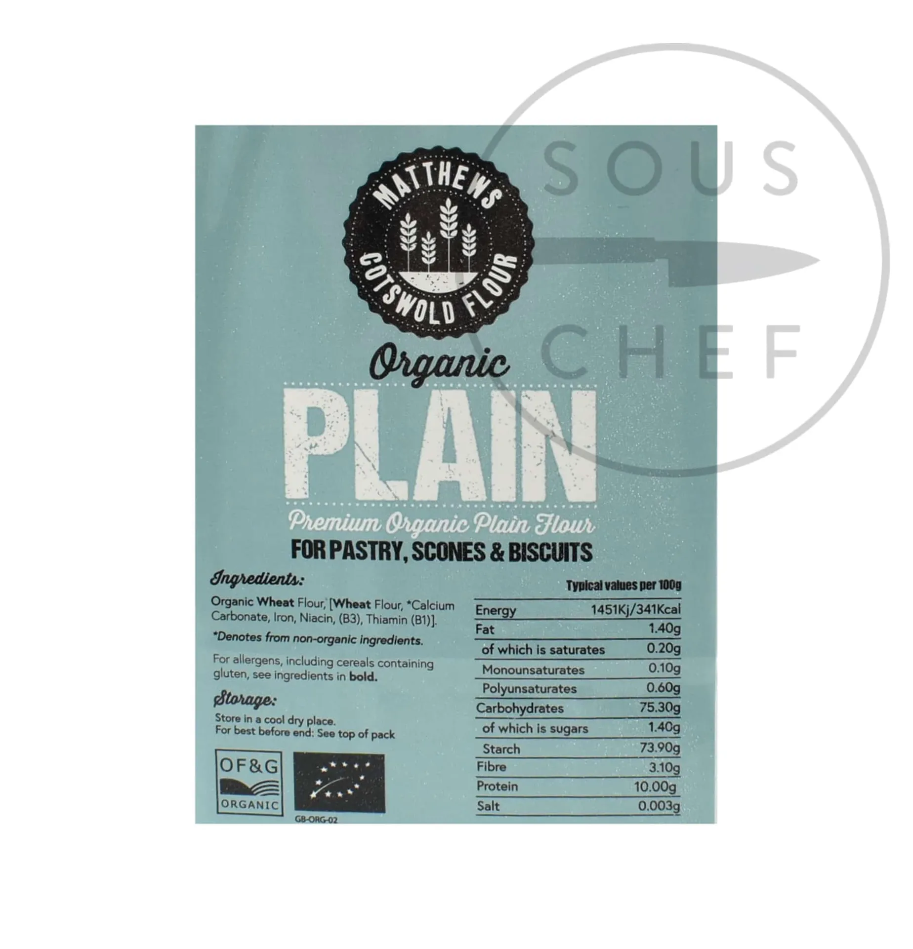 Matthews Cotswold organic plain flour is a versatile flour, fantastic for cakes, pastry, shortbread biscuits and thickening sauces. It is made from soft wheat and is a great everyday flour choice to have at hand in the kitchen.