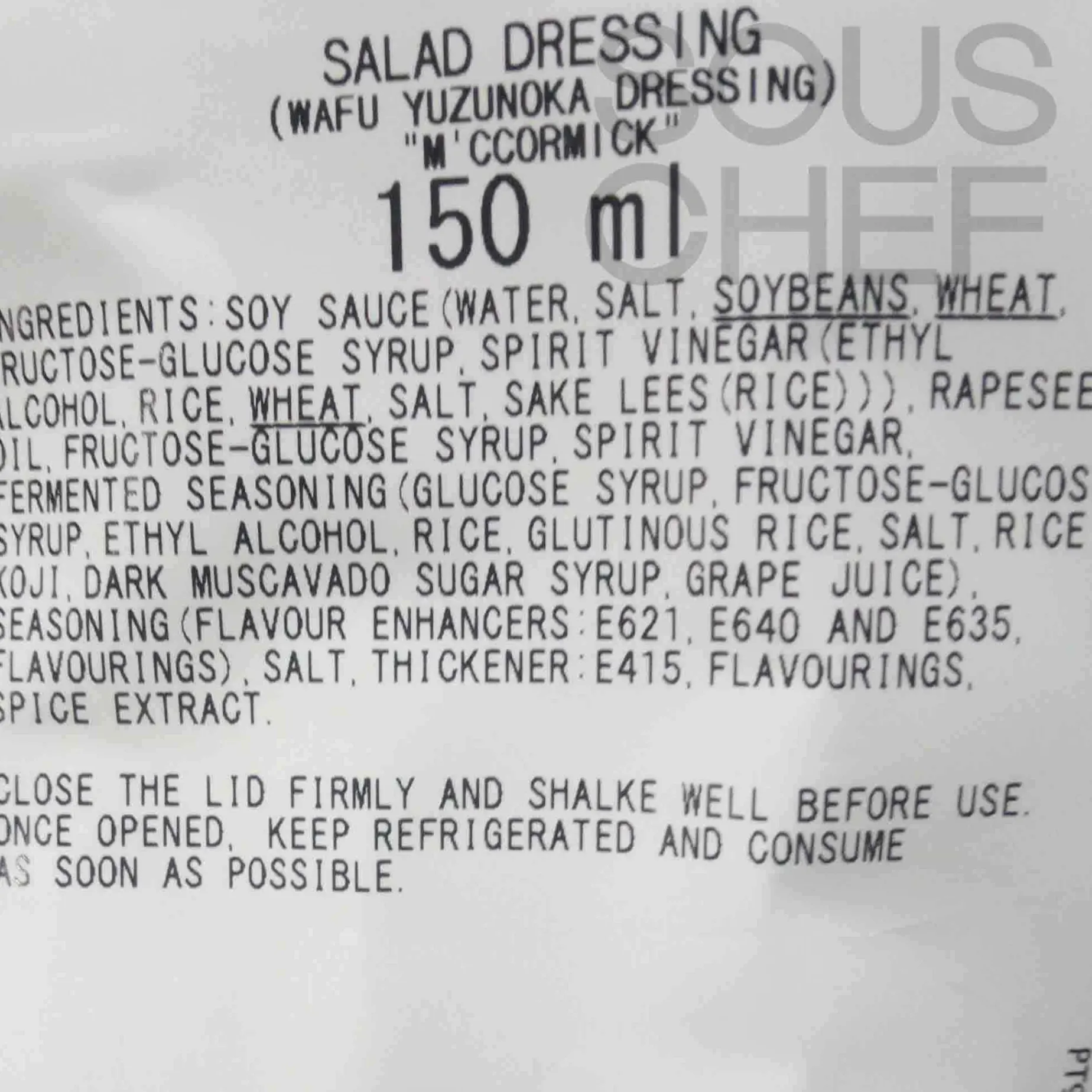 McCormick’s yuzu salad dressing – wafu yuzu no ka – is a light zesty Japanese-style vinaigrette, with an addictive blend of yuzu and sesame oil. Enjoy with crisp leaves on the side of a Japanese meal, or in a mixed salad to contrast with rich fish or meat dishes. The Japanese name wafu yuzu no ka comes from wafu, meaning dressing with a soy sauce base, and yuzu, the floral Japanese citrus fruit, like a cross between an lemon and a grapefruit.