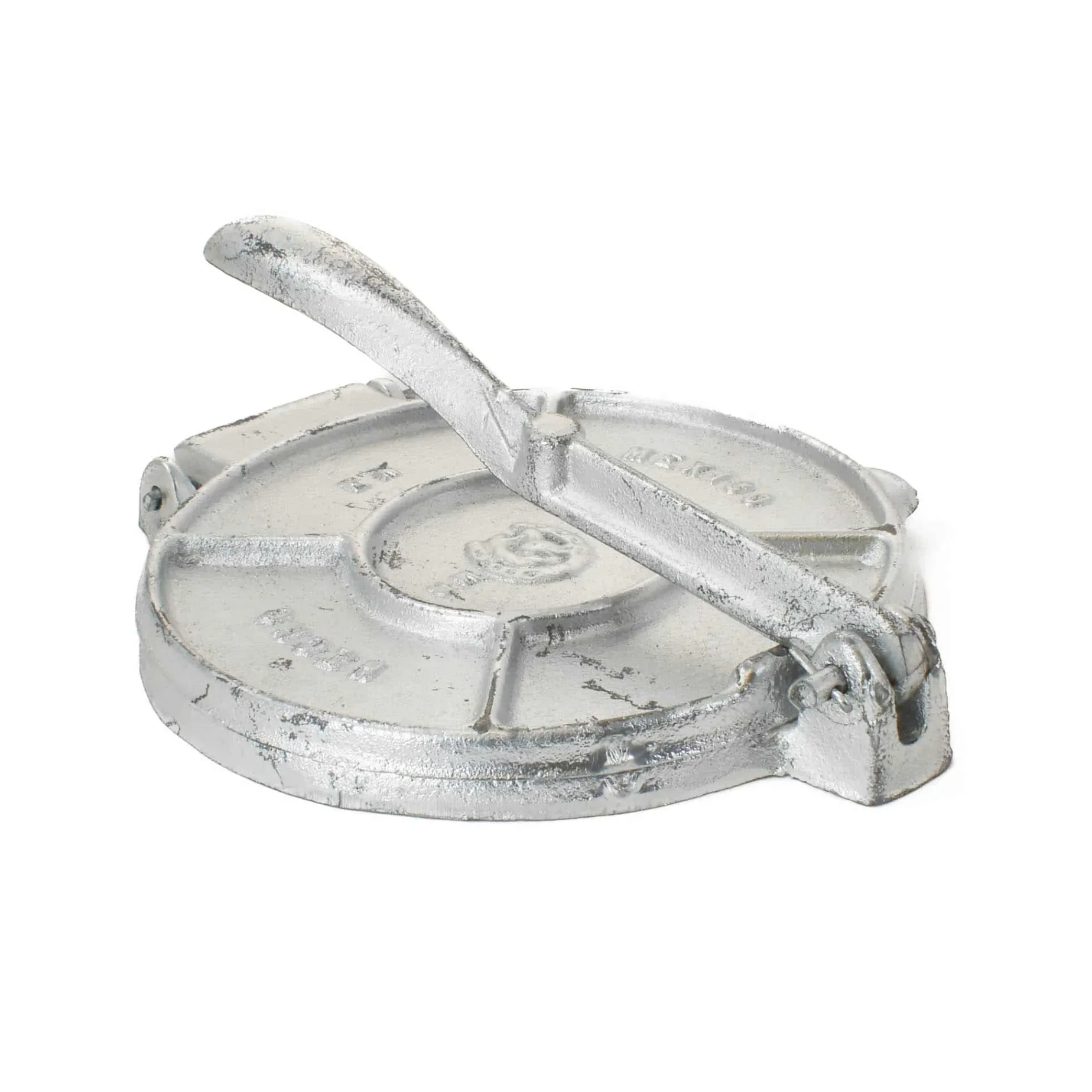 Note: This is an authentic Mexican tortilla press, so the silver finish is not permanent. It is a protective layer to protect from rust and may be prone to wear over time. This does not affect the quality or performance of the product. Use two sheets of plastic film or baking paper on either plate when pressing out the tortillas. When the product arrives, the dimension on the label of the exterior box indicates the size of tortilla it will make.