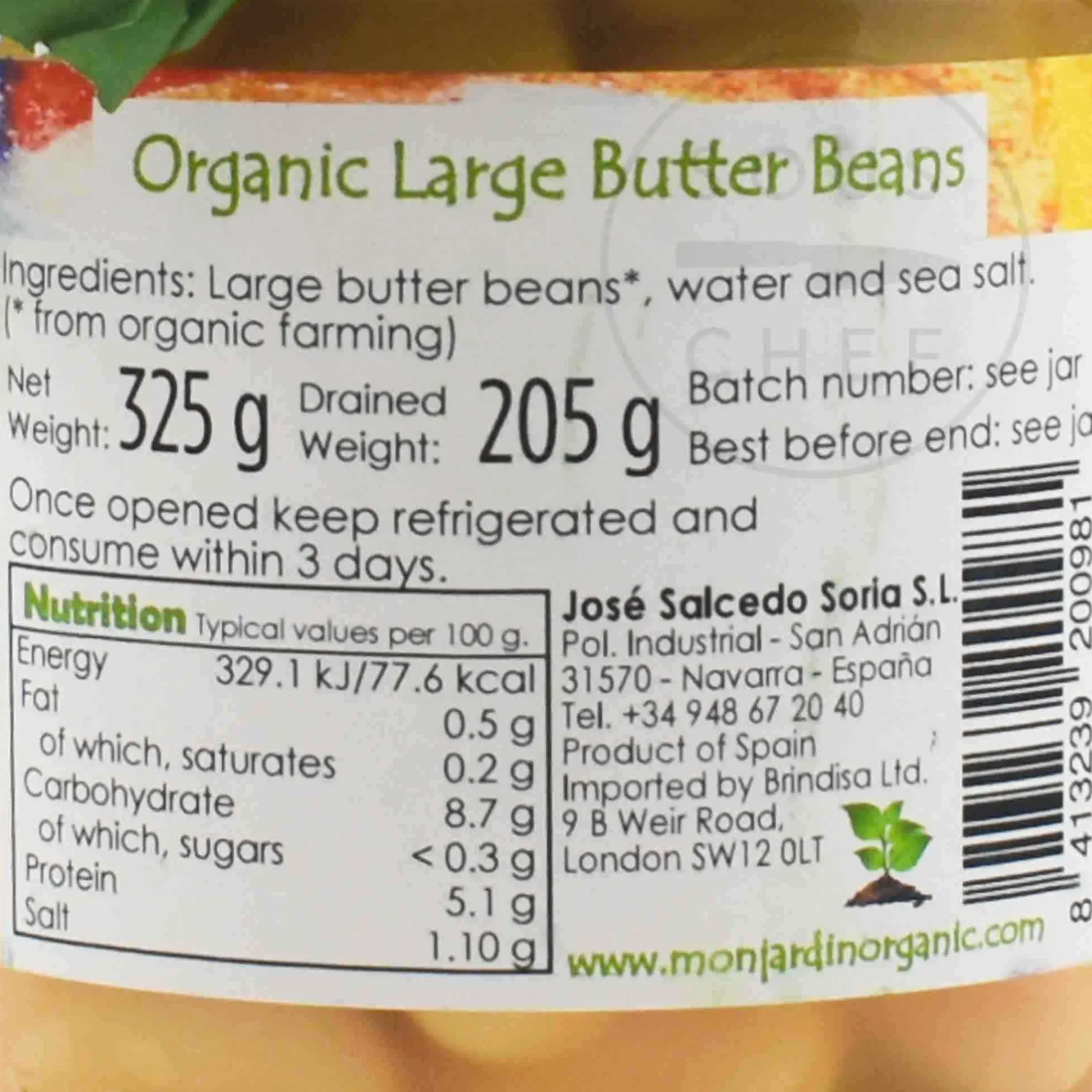 Monjardin organic Judion beans are produced in Navarra in northern Spain. They are prepared with only water and a little salt, cooked in the same manner as the Spanish do at home. No soaking required, these butter beans are cooked gently to retain their shape and texture.