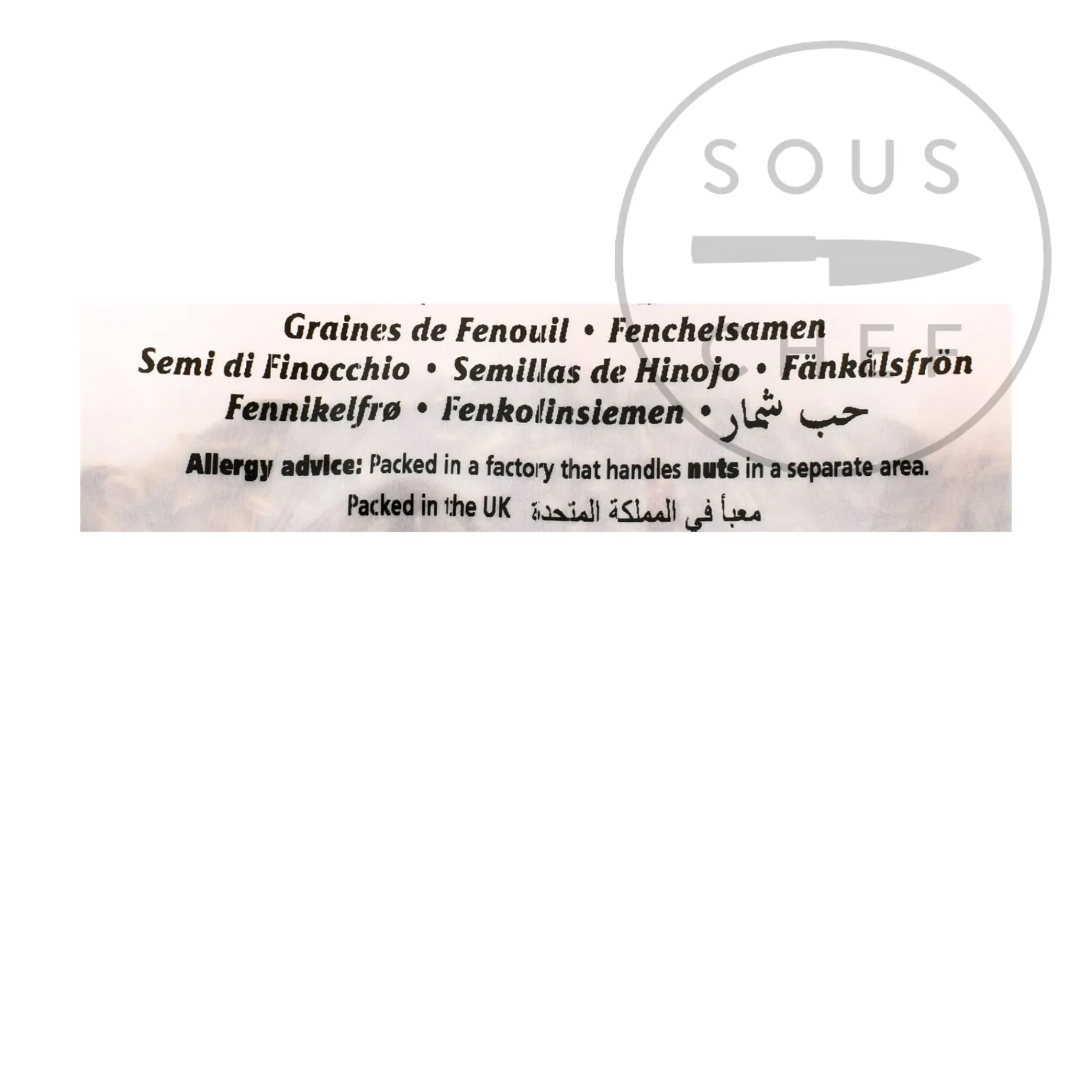 Fennel seeds are the dried seeds of the fennel plant, Foeniculum vulgare. Fennel is a plant indigenous to the Mediterranean with a long history of cultivation. Fennel seeds have a pronounced aniseed flavour, with a sweetness enhanced by dry-frying.