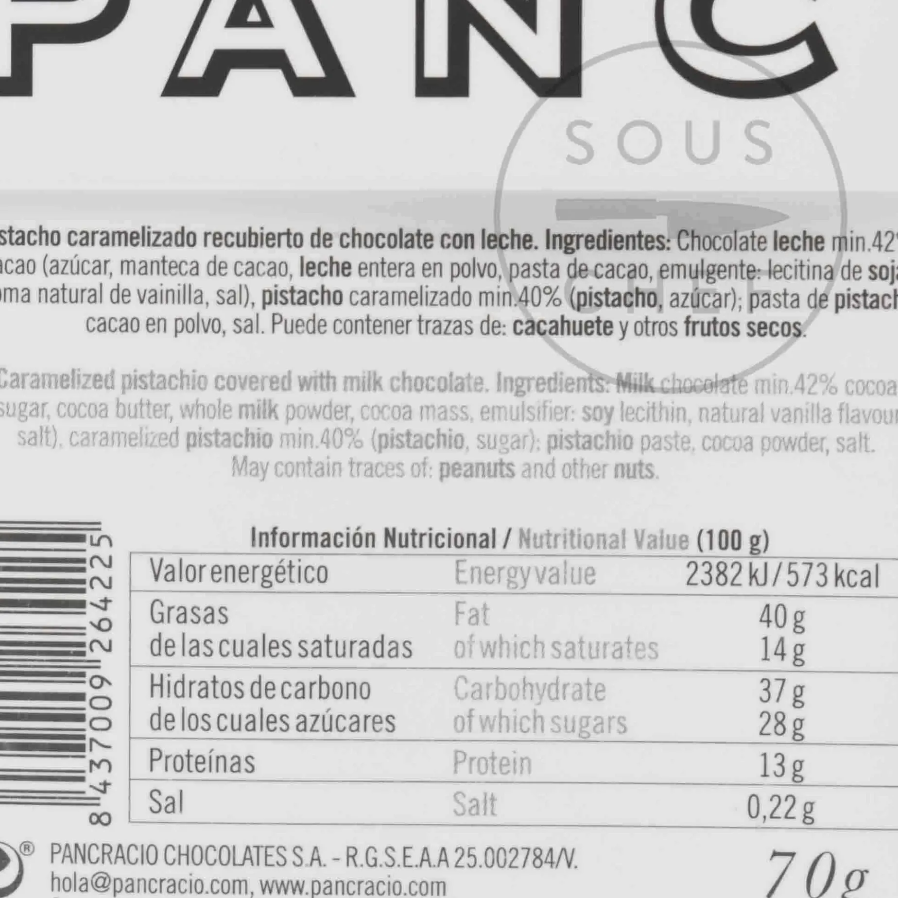 Pancracio caramelised pistachios are crunchy, nutty and totally divine. Share them with friends or keep them all to yourself for an indulgent solo snack. Each caramelised pistachio is covered in a thin layer of milk chocolate, followed by a dusting of cocoa powder. The bittersweet cocoa is a perfect counterpoint for the rich and creamy milk chocolate.