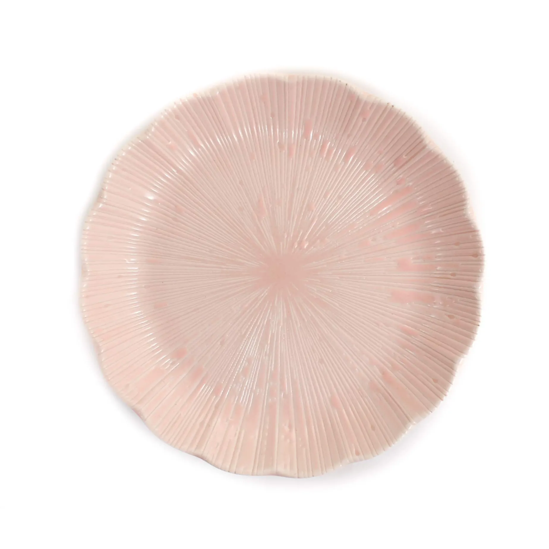 Use this pink scalloped plate to serve Japanese desserts and side dishes. The scalloped edges give it a unique, elegant appearance. The plate is pale pink at the edges with a darker shade at the centre. It is reminiscent of a delicate spring flower.