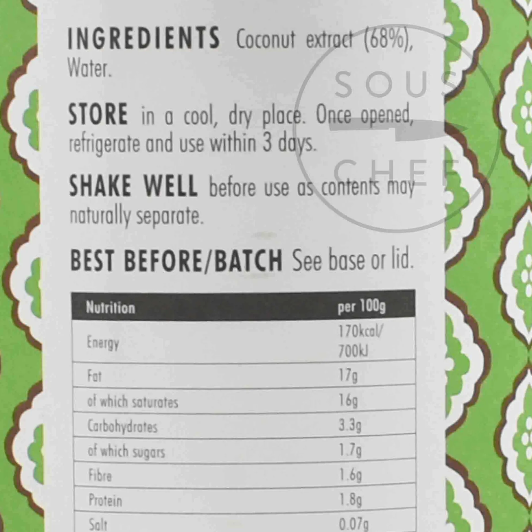 Product formulations and details may change. For the latest ingredients and allergen information always check product packaging prior to consumption. Ingredients: Coconut extract (68%), water