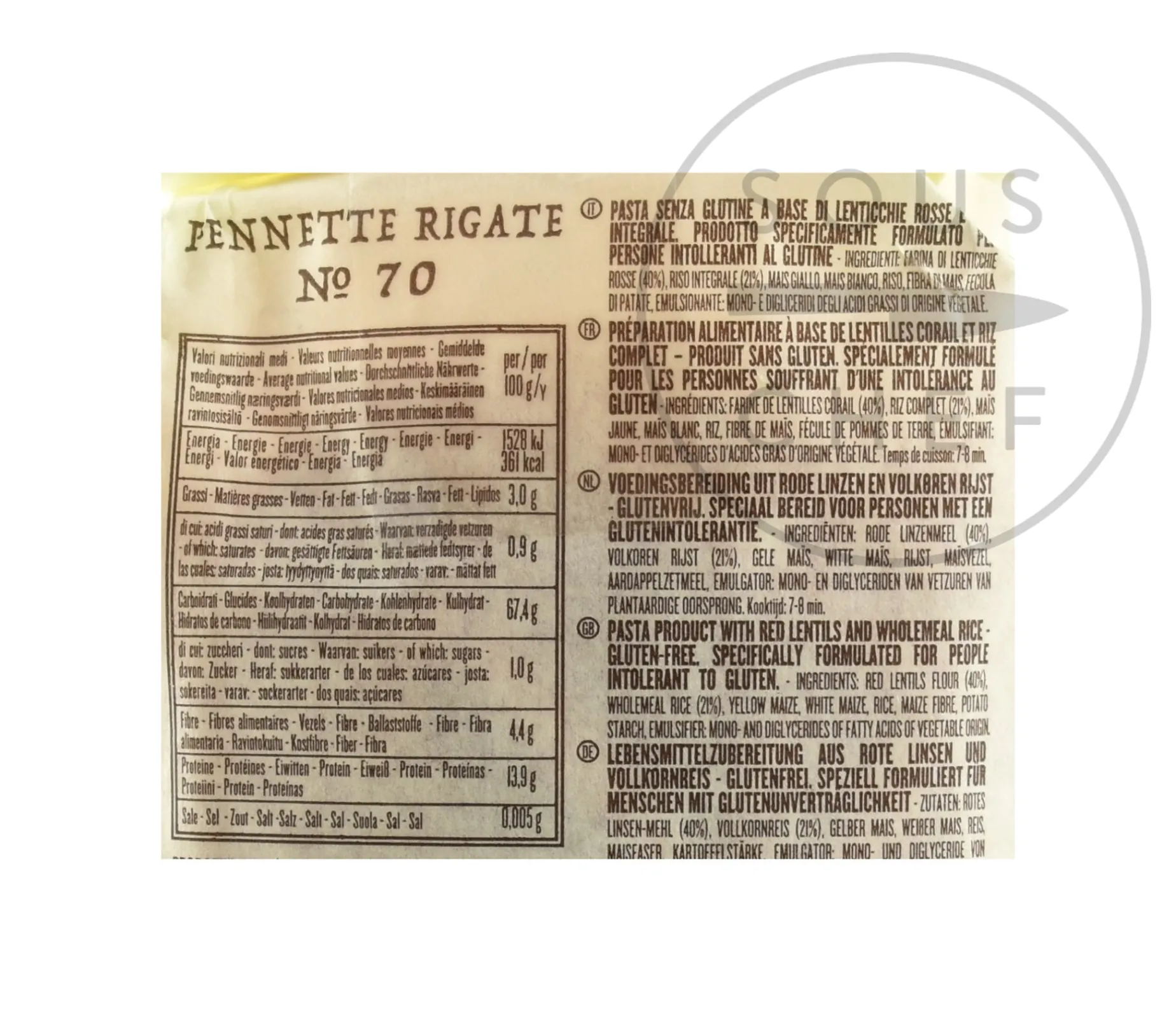 Product formulations and details may change. For the latest ingredients and allergen information always check product packaging prior to consumption. Ingredients: red lentils flour (40%), wholemeal rice (21%), yellow maize, white maize, rice, maize fibre, potato starch, emulsifier: mono and diglycerides of fatty acids of vegetable origin.