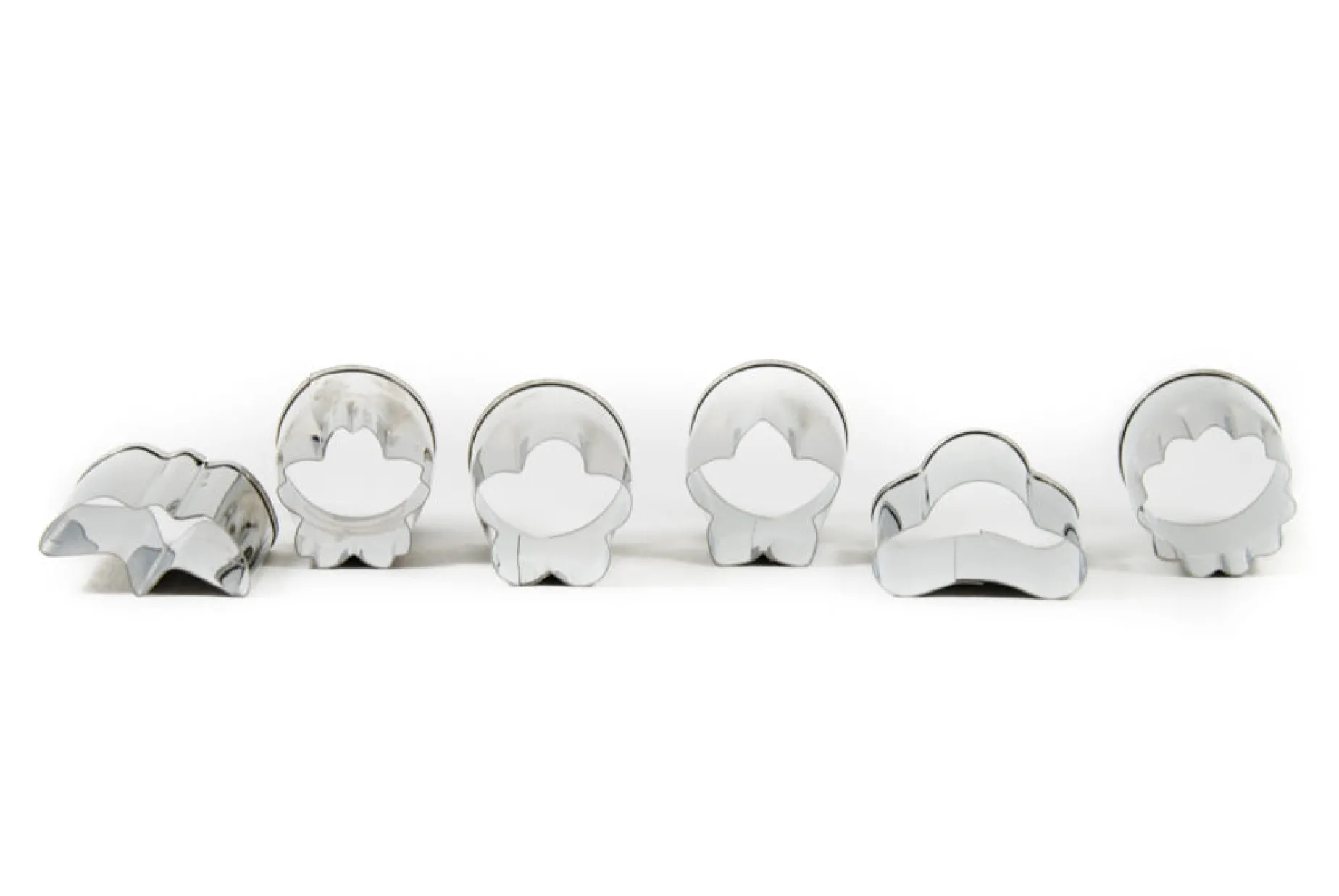 Use the food cutters to make shapes from cheese, ham, omelette, carrots or fruit to make decorative shapes for lunchboxes and parties. Or use the cutters to make bite-size biscuits.