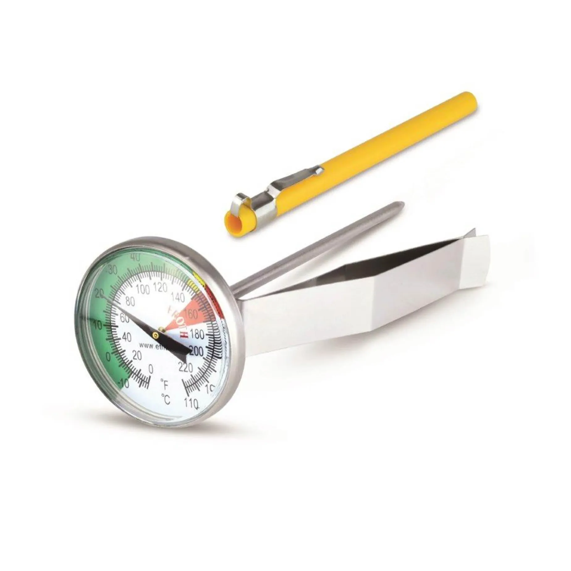 This stainless steel milk thermometer is an essential tool for professional baristas and home coffee makers. Use it to froth milk at the perfect temperature for a creamy cappuccino, latte or flat white.