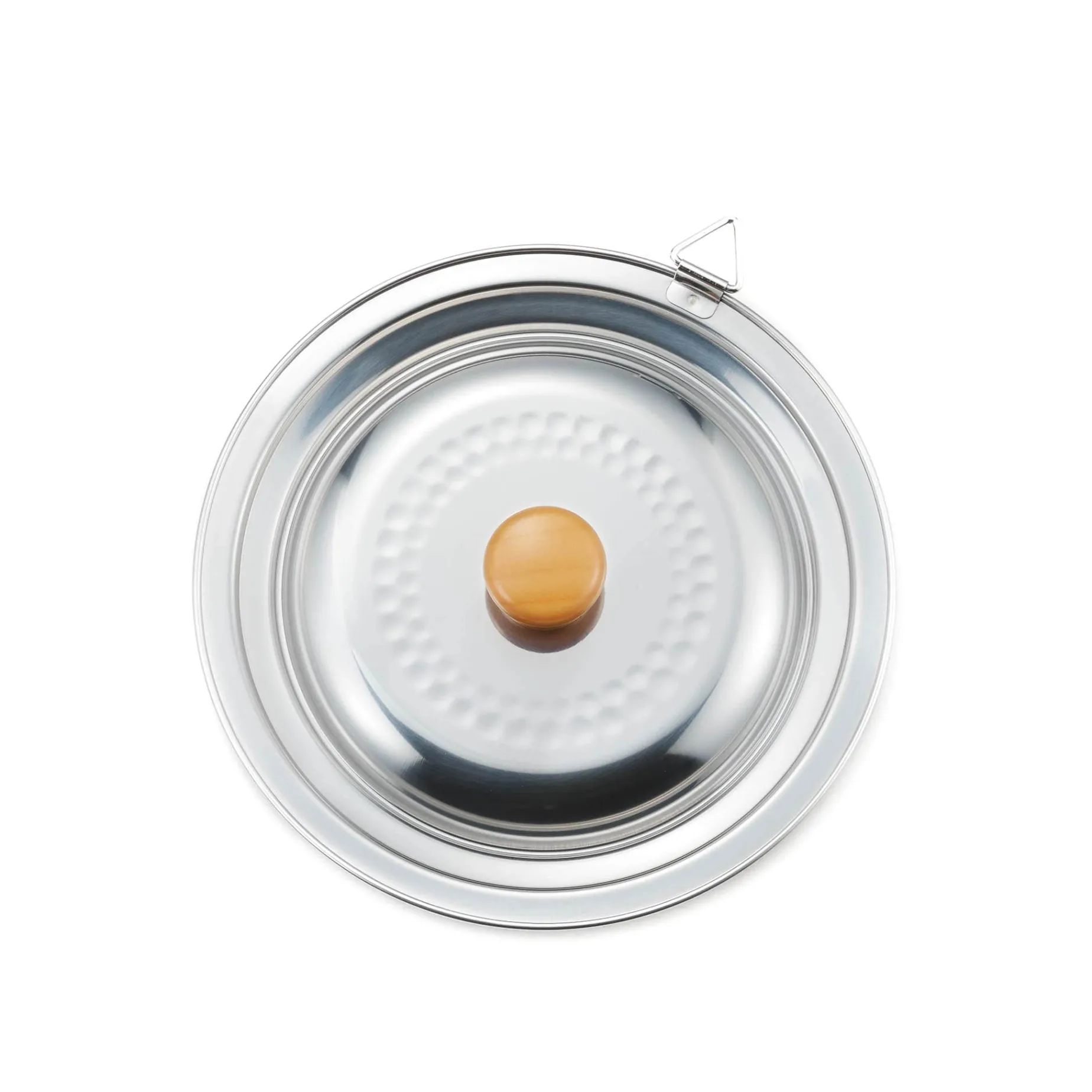 This stainless steel Yukihira saucepan lid is the perfect fit for the yukihira saucepan 16cm. Pair this sleek stainless steel lid with the matching pan to retain the heat during cooking, or keep the food warm until you’re ready to serve. The round wooden knob – which matches the pan’s handle – is comfortable to hold and lift when you want to check on what’s cooking.