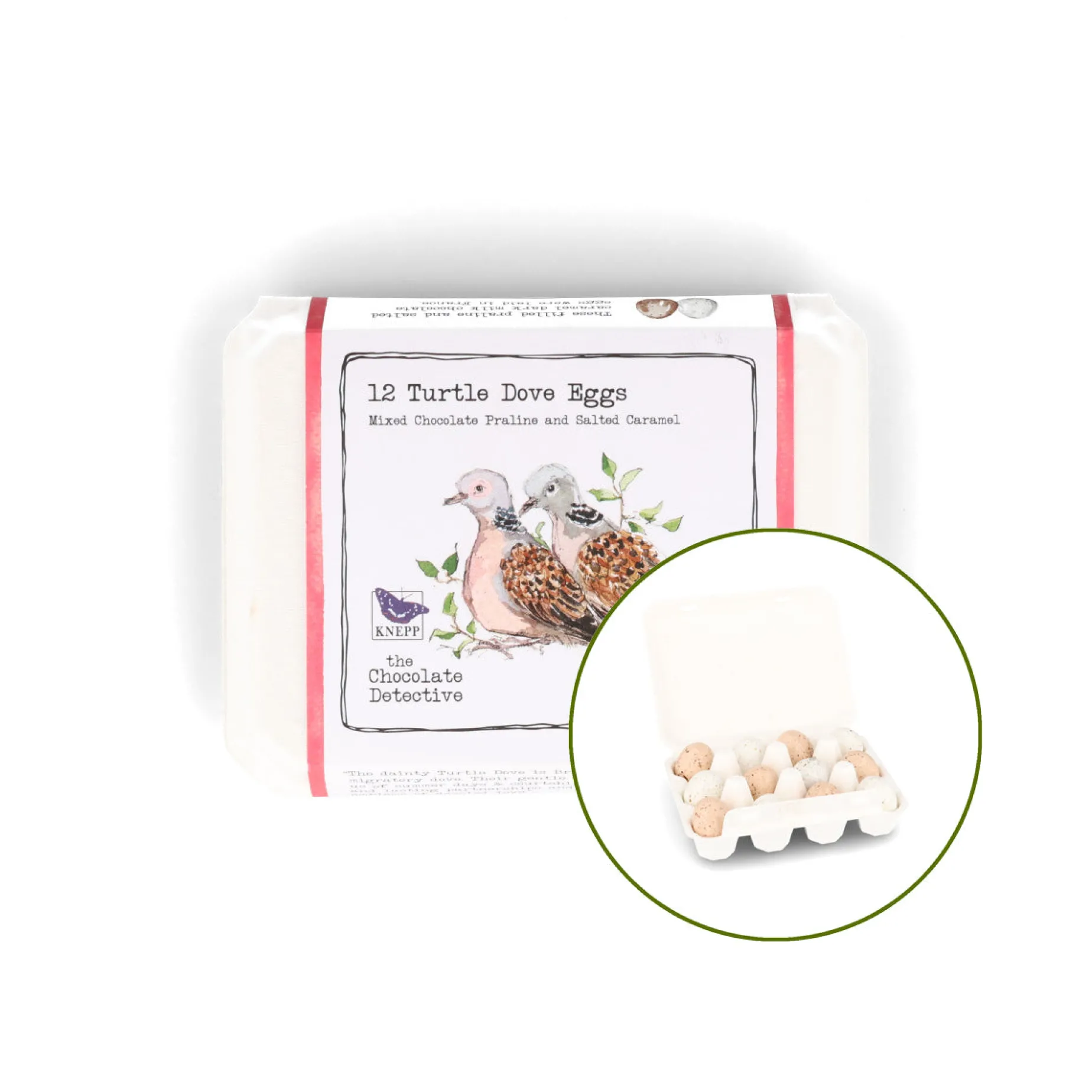 Chocolate Detective’s box of turtle dove chocolate eggs are a delight. Open the box to reveal 12 eggs with speckled white and brown shells. They’re wonderfully realistic but the shells hide a sweet surprise. Inside, you’ll find layers of milk and dark chocolate.