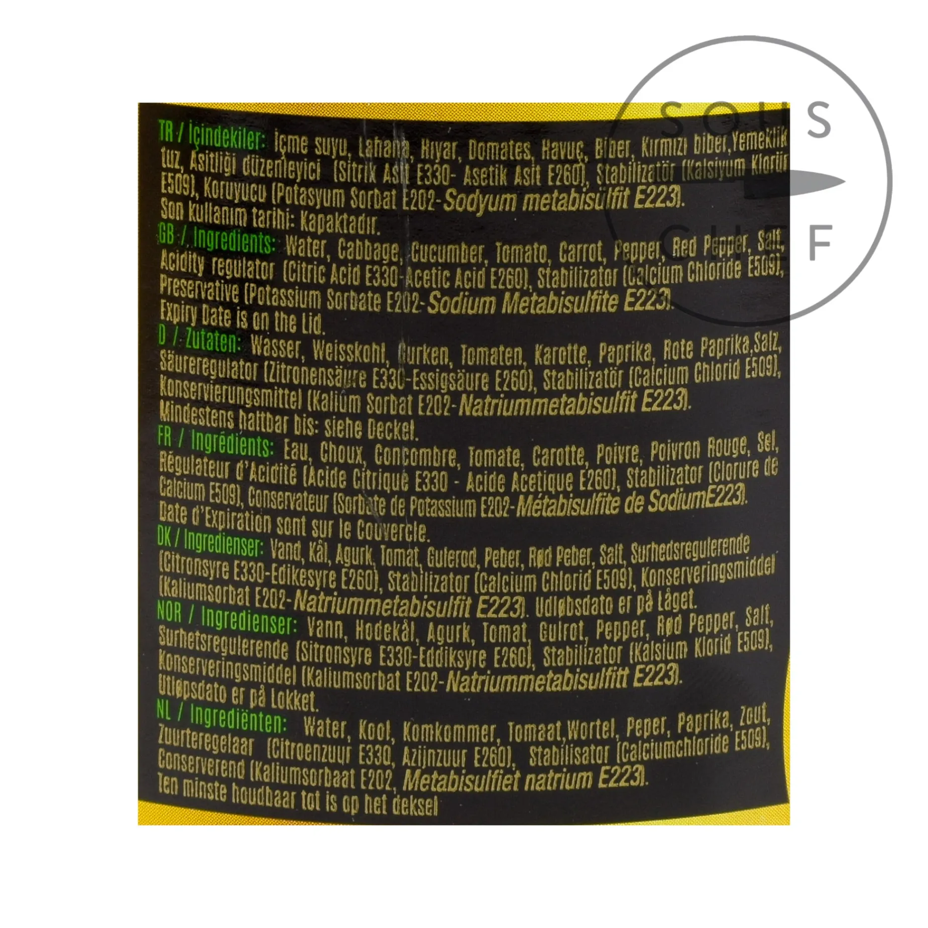 Yaren Turkish mixed pickles – ‘turşu’ – are a the classic accompaniment to a Turkish meal. The salty-sour Turkish pickle mix of cabbage, cucumber, chilli and carrot is great served with grilled fish, kebabs, falafel, or even as an appetiser alone.