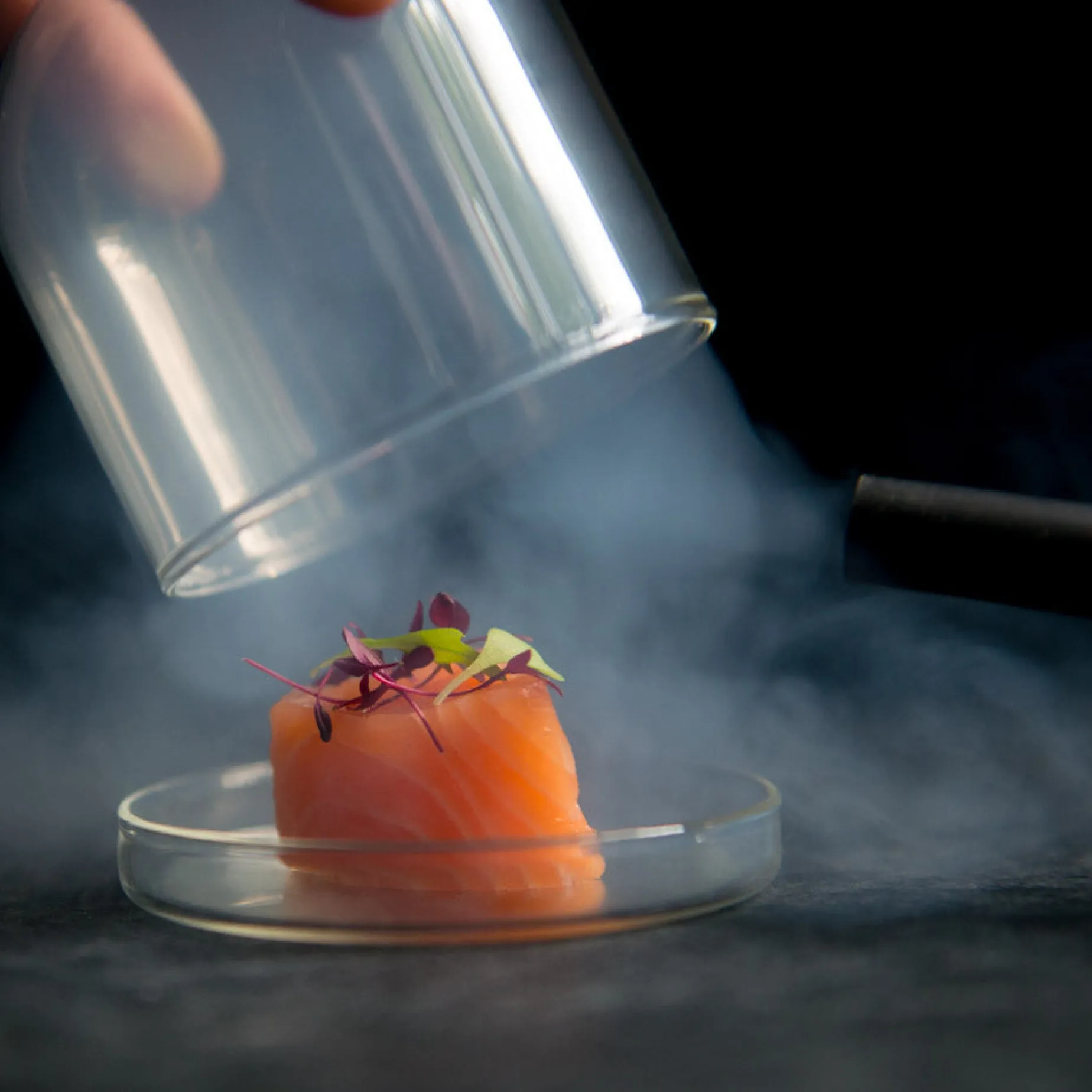 Experience fabulous smoke aromas at the table – just fill the glass presentation domes with smoke from a Smoking Gun. The smoke will infuse your dish, and just lift away the glass lid at the table to wow diners and guests.