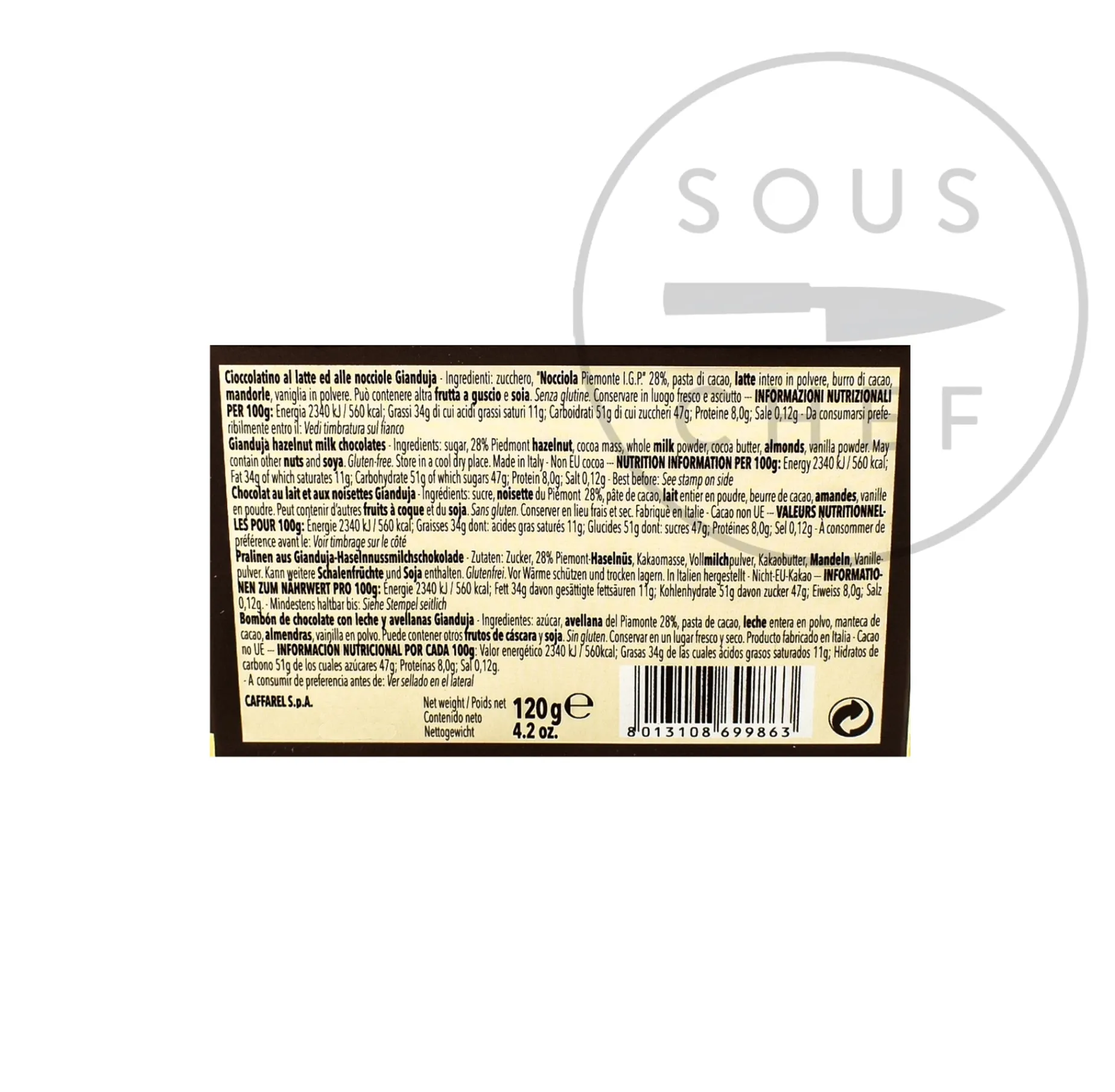 Product formulations and details may change. For the latest ingredients and allergen information always check product packaging prior to consumption. Ingredients: Sugar, 28% Piedmont hazelnut, cocoa mass, whole milk powder, cocoa butter, almonds, vanilla powder