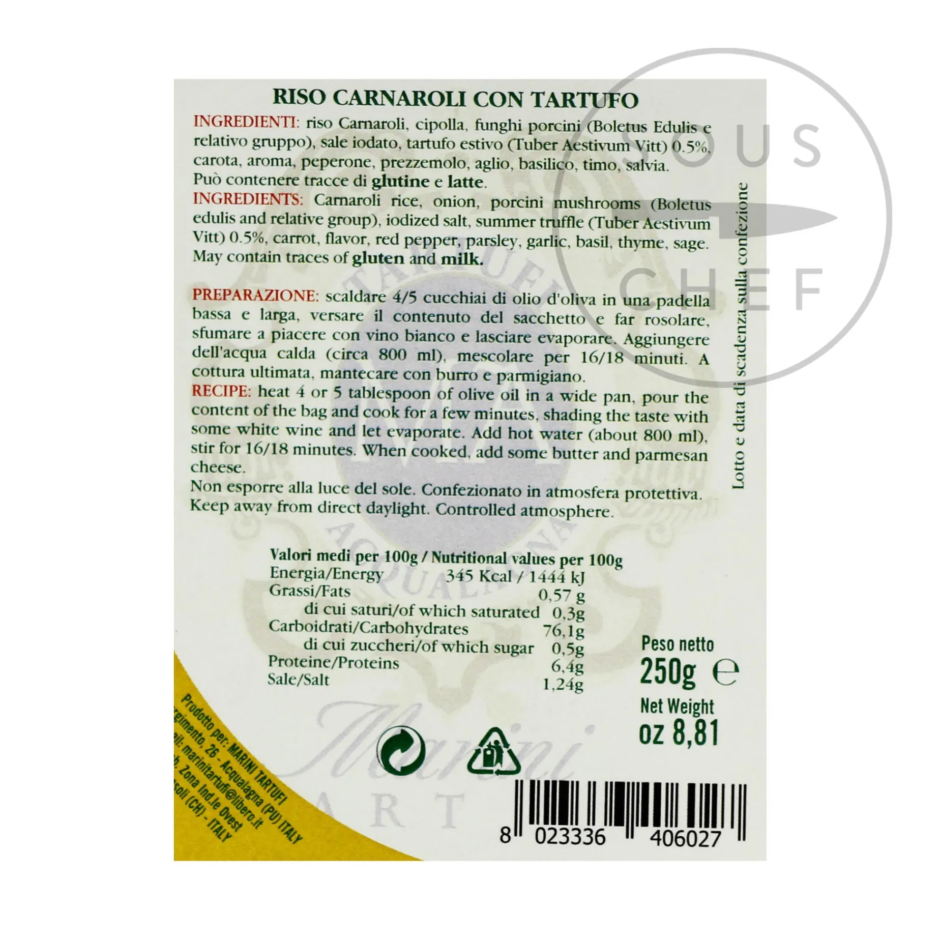 This carnaroli risotto with truffle is produced in Acqualagna, the home of Italy’s truffle markets, by Marini & Azzolini who have been collecting and producing truffle products for over 50 years.