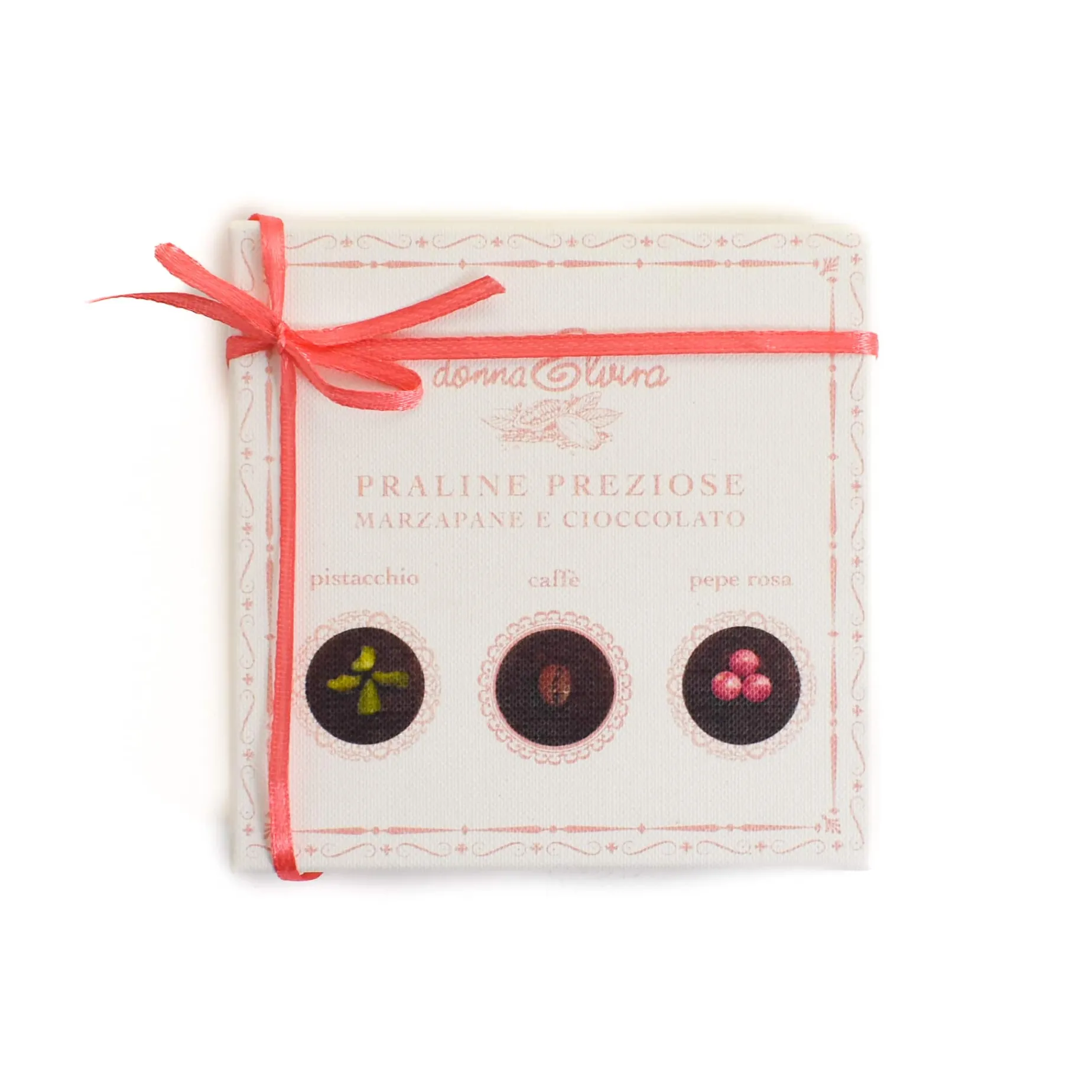 This elegant gift box contains nine ‘Precious Pralines’. They are made by hand at the Donna Elvira factory in Sicily.