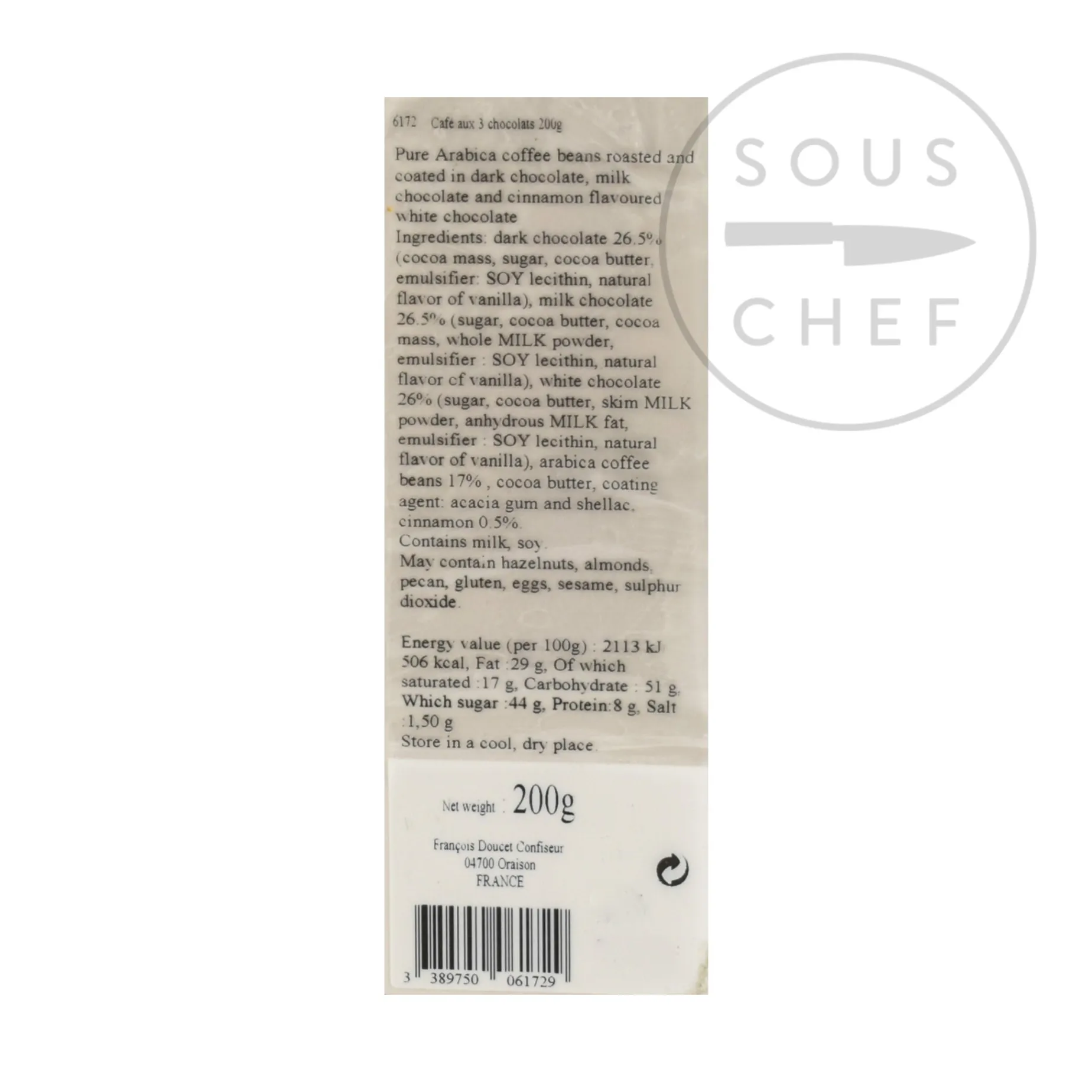 Product formulations and details may change. For the latest ingredients and allergen information always check product packaging prior to consumption. Ingredients: Dark chocolate (cocoa paste, sugar, cocoa butter, emulsifier: soy lecithin, natural flavour of vanilla), milk chocolate (sugar, cocoa butter, cocoa mass, whole milk powder, emulsifier: soy lecithin, natural flavour of vanilla), white chocolate (sugar, cocoa butter, skimmed milk powder, anhydrous milk fat, emulsifier: soy lecithin, natural flavour of vanilla), arabica coffee, cocoa butter, coating agent: acacia gum and shellac, cinnamon. May contain hazelnuts, almonds, pecan, gluten, eggs, sesame, sulphur dioxide. Allergens listed in bold.