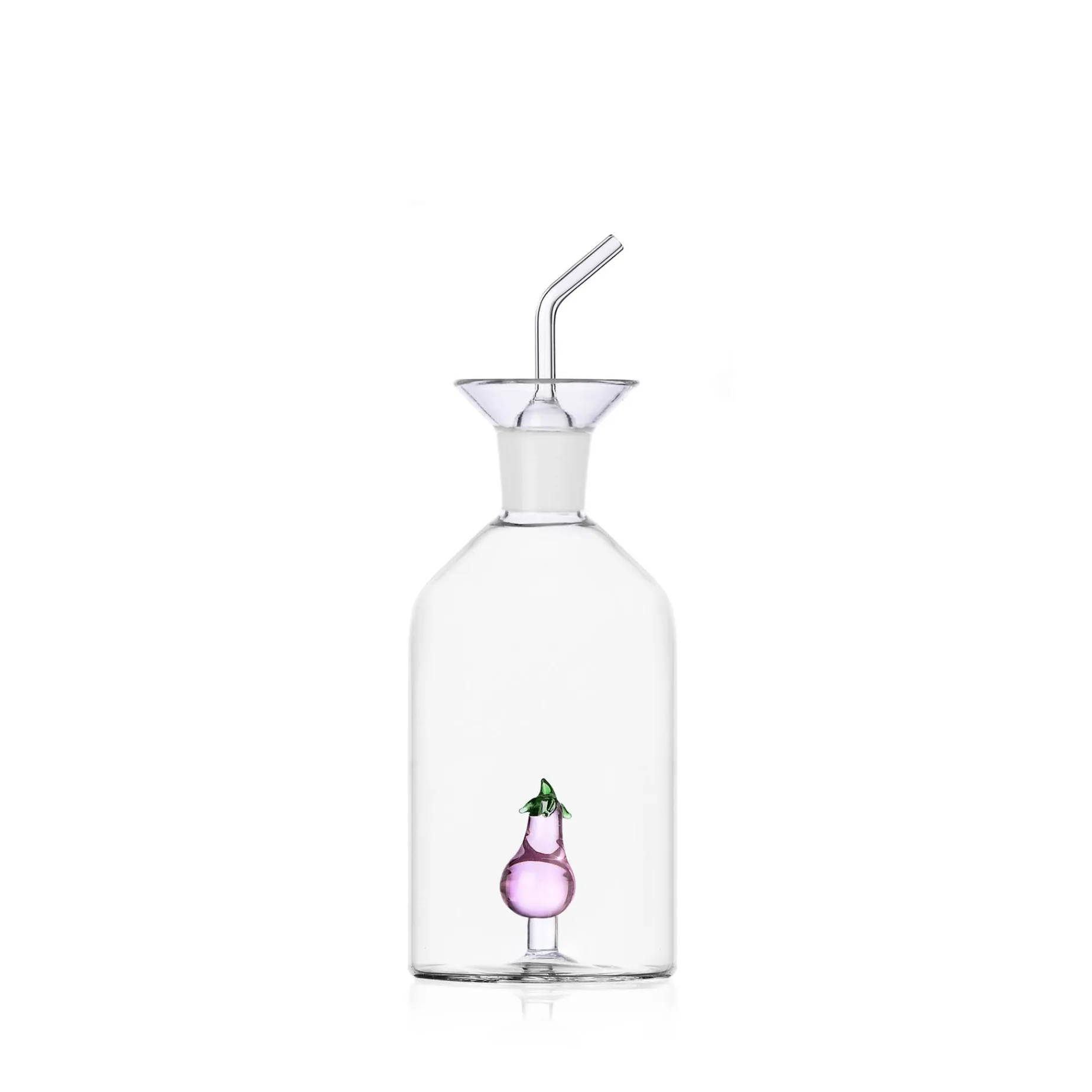 Use this eggplant oil bottle to drizzle olive oil over crostini and Tuscan bean soups. The little purple aubergine is visible inside the clear glass bottle even when it’s filled with golden oil.