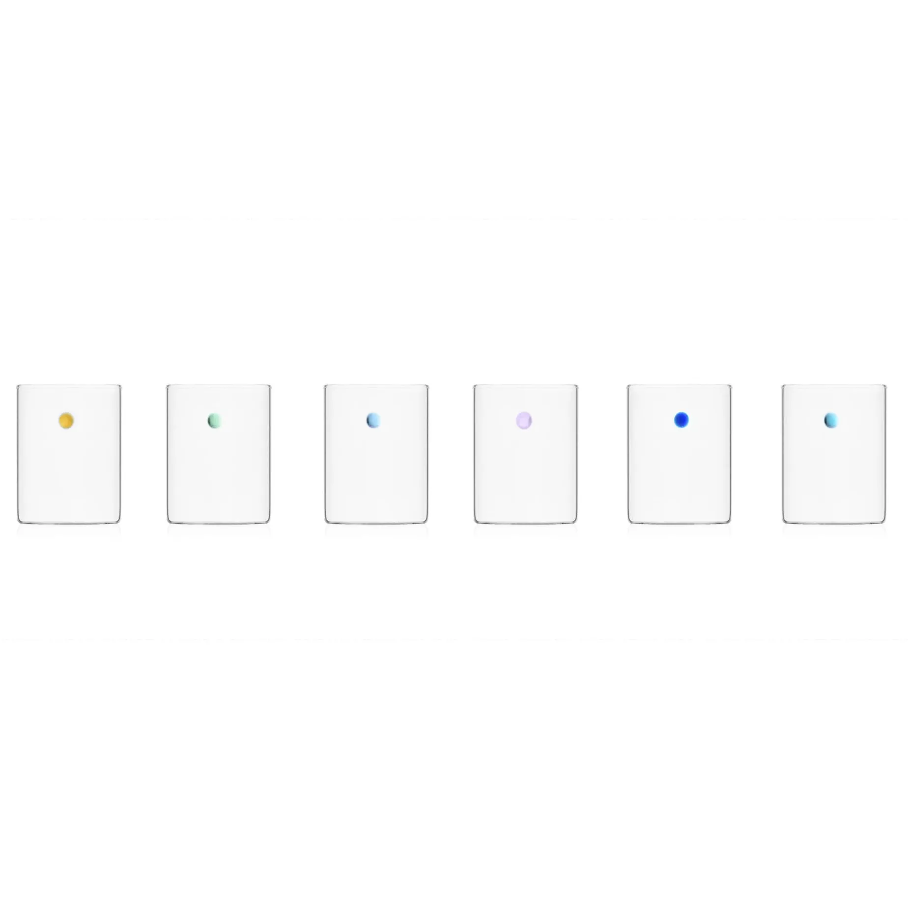 This set of 6 of Ichendorf Milano is a stunning glassware collection to serve water or wine in style. Each cylinder-shaped tumbler has a different coloured glass bead detail. Each of the 6 glasses features a unique iridescent colour, including amber, lilac and blue shades. These simple tumblers hold drinks in elegant style.