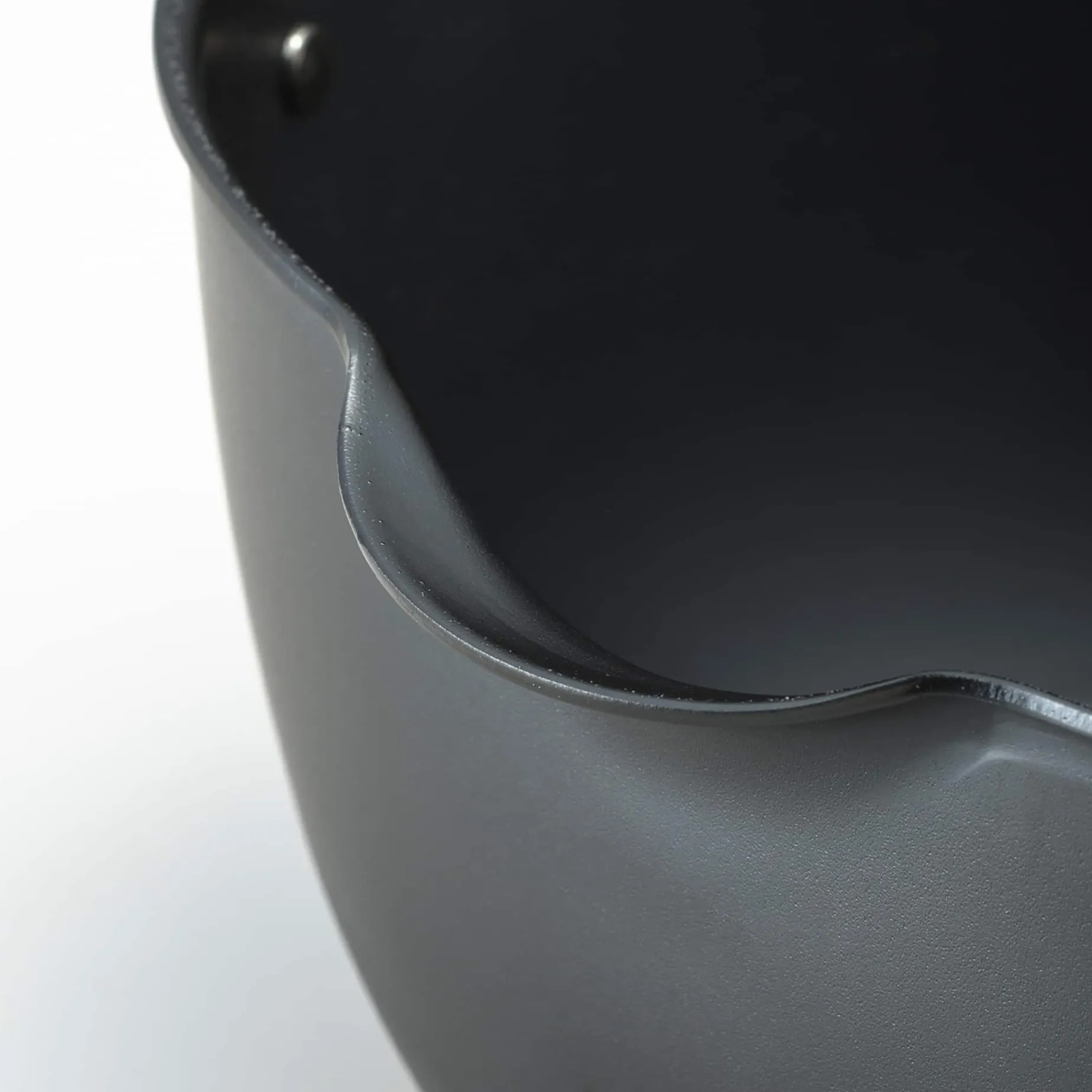 The pot has two handles so you can safely move it around the kitchen. The pouring spout makes it easy to pour away the used oil. Volume measurements are clearly marked inside the pot.