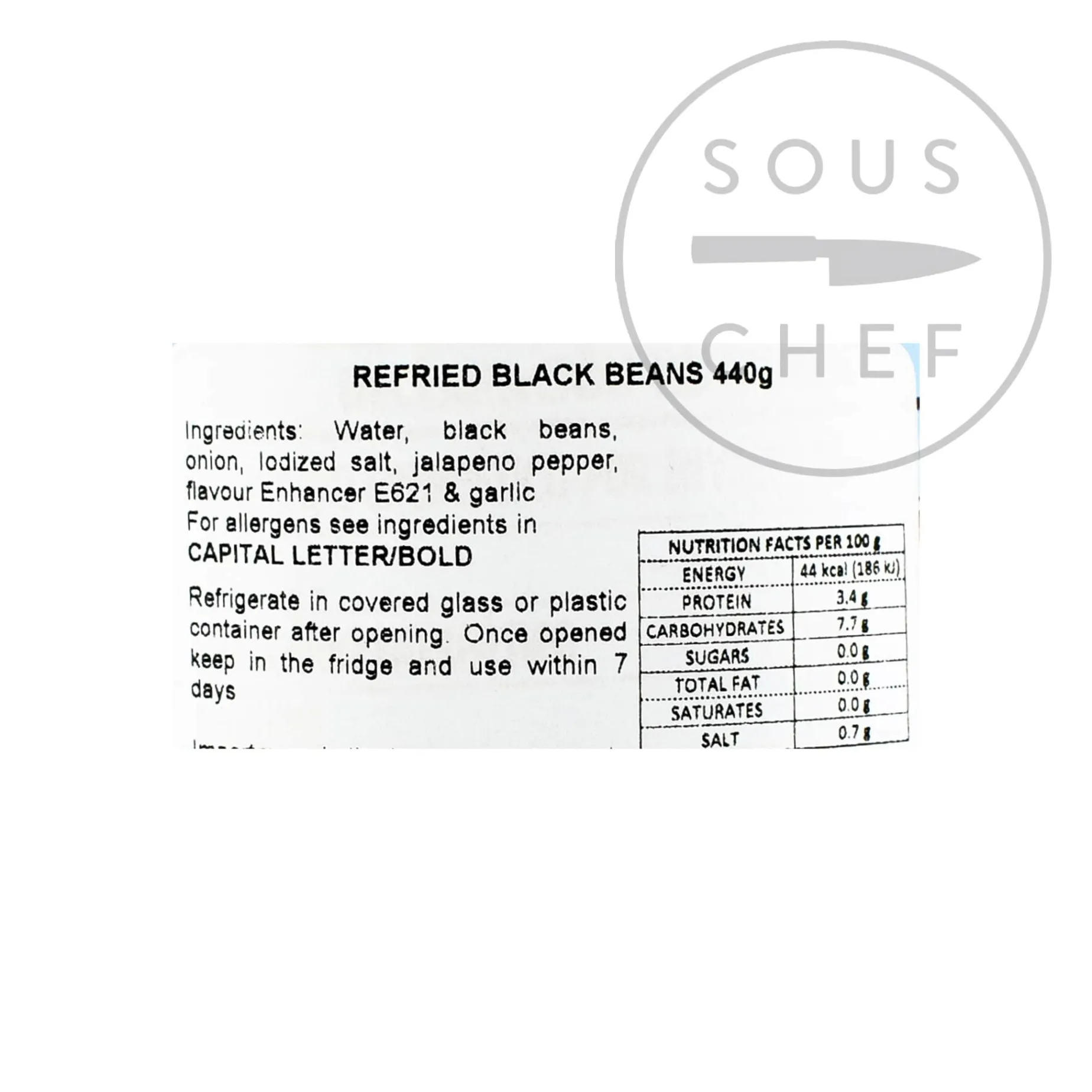 Product formulations and details may change. For the latest ingredients and allergen information always check product packaging prior to consumption. Ingredients: water, black beans, onions, iodised salt, jalapeno pepper, flavour enhancer E621 (monosodium glutamate) and garlic. Contains MSG.