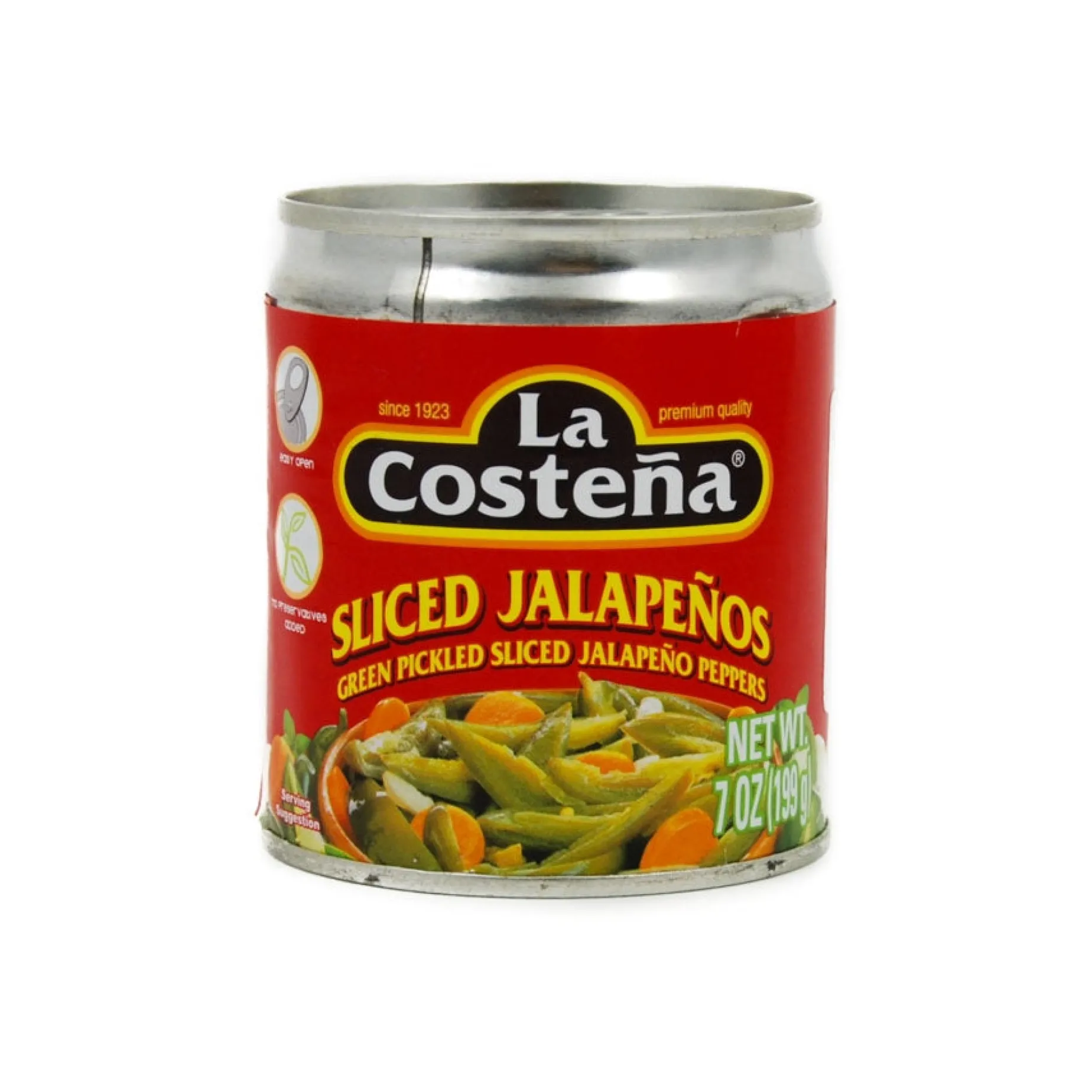 The La Costeña sliced green jalapeño peppers have been pickled in a delicious, sesame oil and garlic mixture which adds extra complexity to the jalapeño chillies. The spicy sweet taste is a distinctive, South American flavour which enhances a wide variety of Mexican and Tex Mex dishes. Try adding to dips, salsas and bean salads as well as sneaking a few jalapeños inside a burger or on top of a pizza.