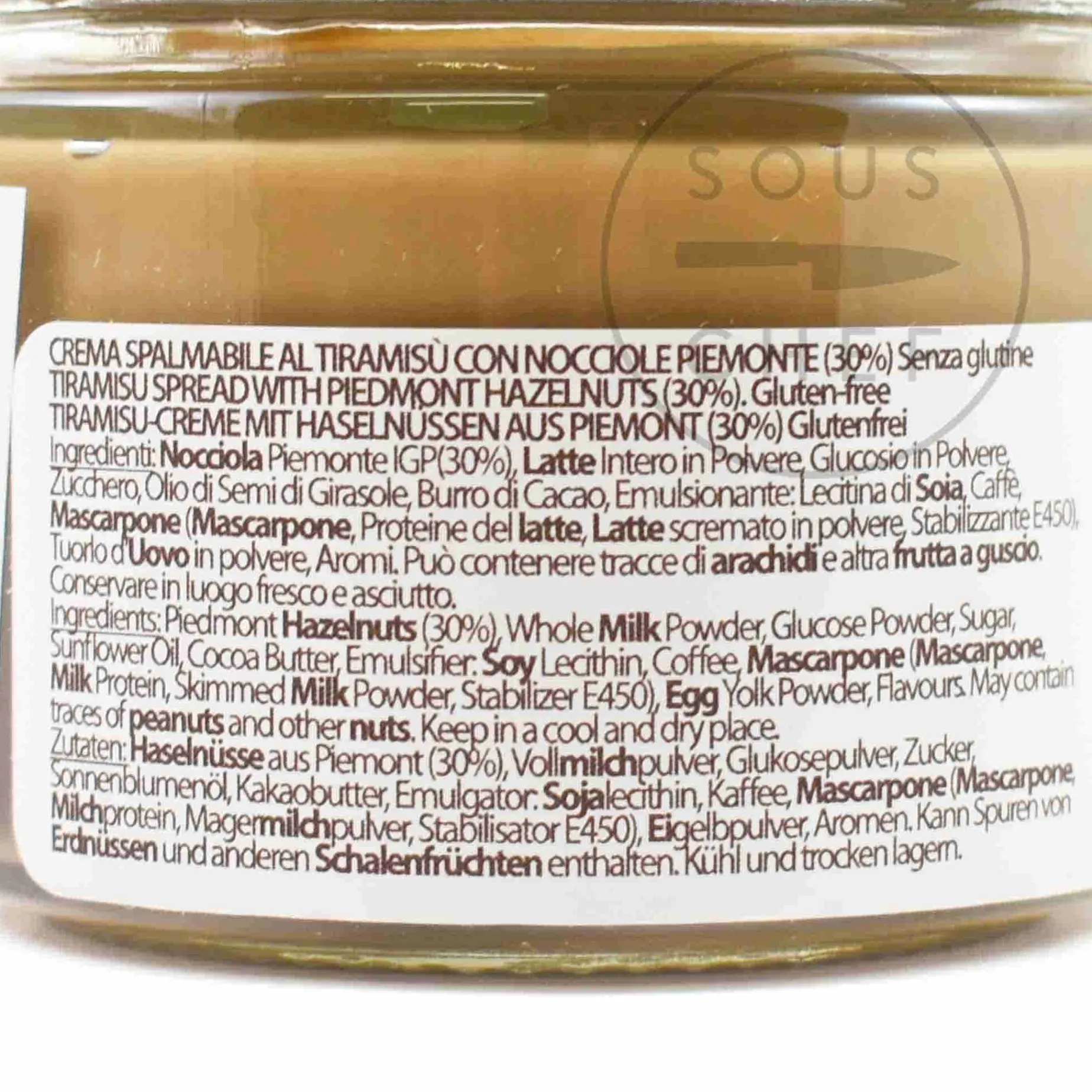 Product formulations and details may change. For the latest ingredients and allergen information always check product packaging prior to consumption. Ingredients: Piedmont hazelnuts (30%), whole milk powder, glucose powder, sugar, sunflower seed oil, cocoa butter, emulsifier: soy lecithin, coffee, mascarpone (mascarpone, milk protein, skimmed milk powder, stabiliser e450), egg yolk powder, flavours.