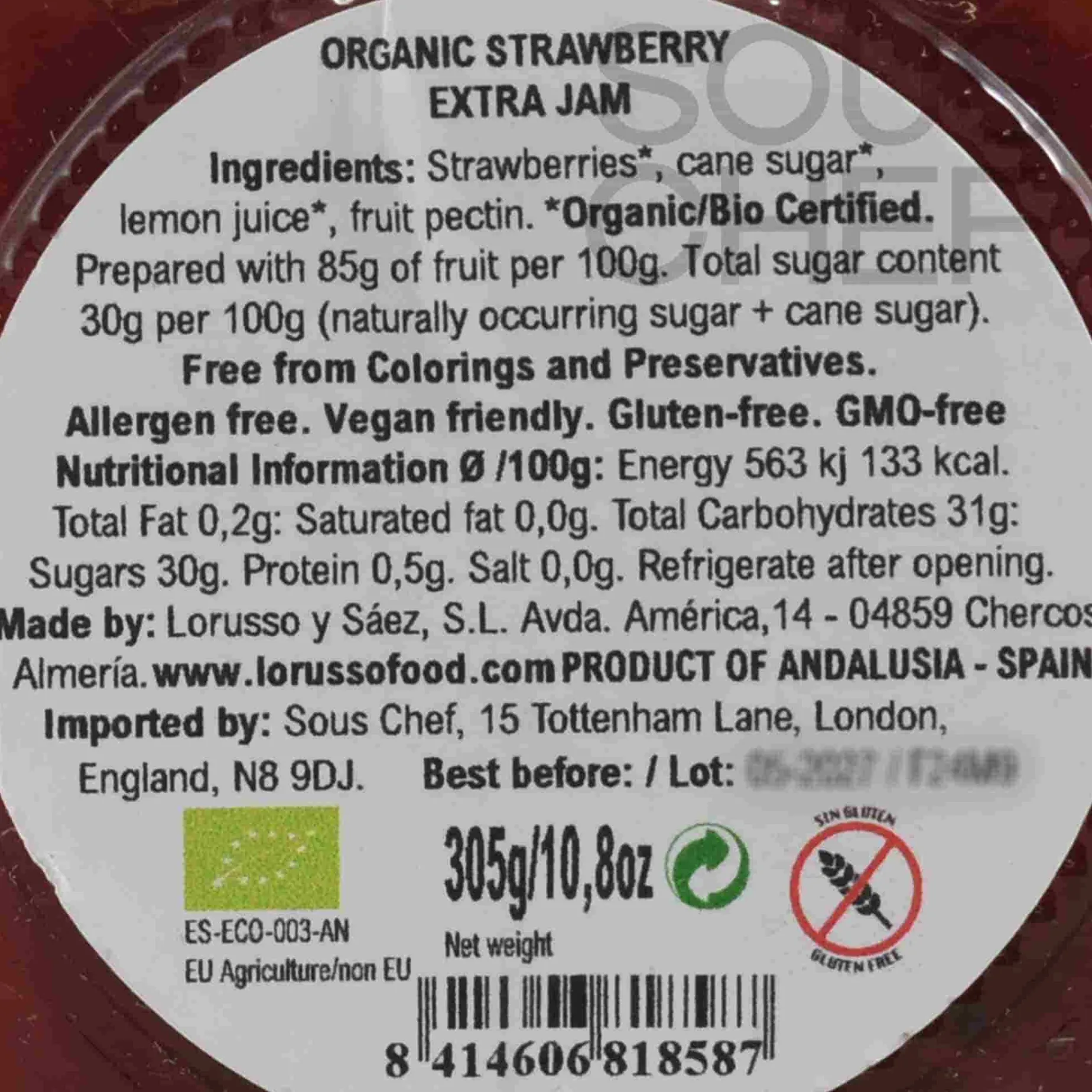 LoRUSSo Organic Artisanal Strawberry Jam, 305g
