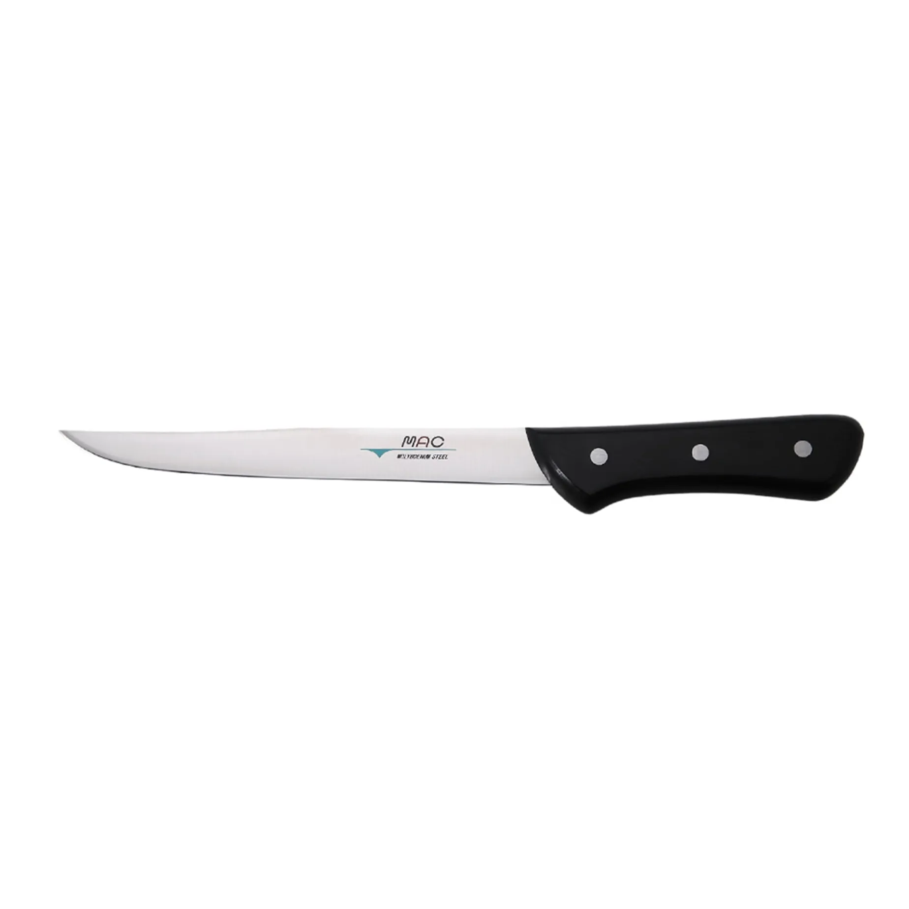 MAC knives are handmade by professional craftsmen in Seki City, Japan. The blades are made from high carbon steel which is strong and rust resistant. The thin blades retain their edge over time and can be easily resharpened when required.