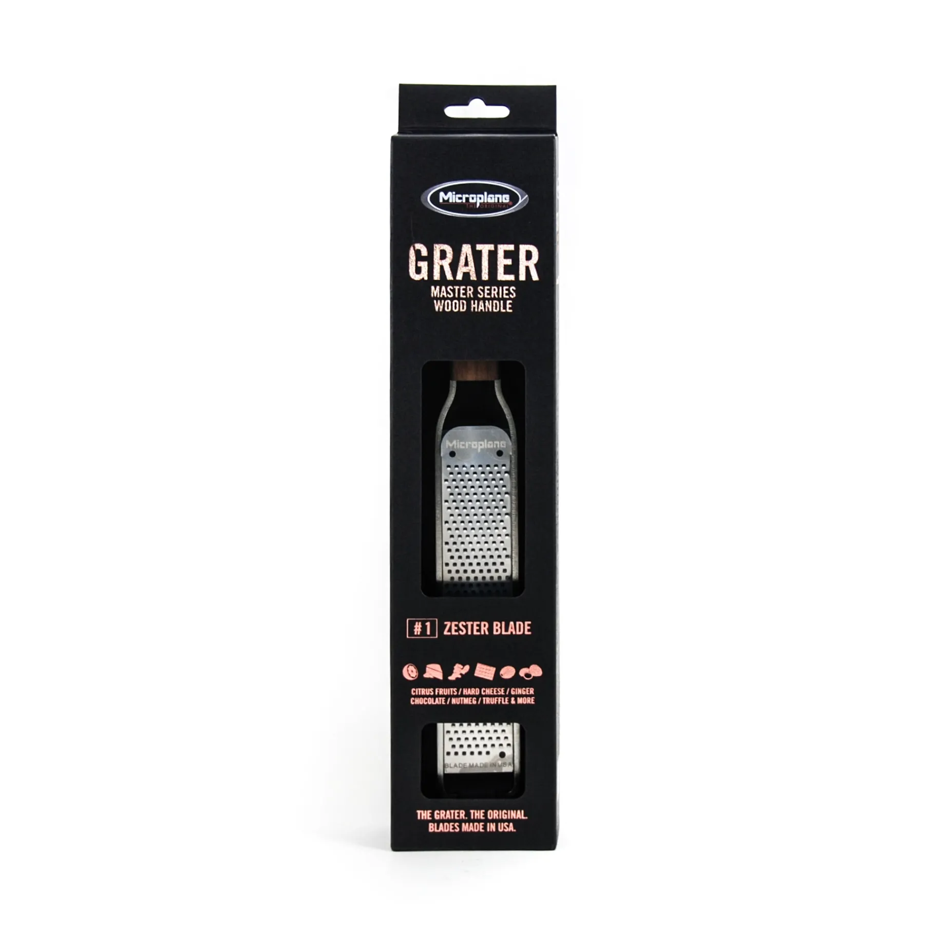 This Microplane zester features an elegant walnut wood handle, non-slip foot and protective cover. All graters come with a lifetime guarantee.