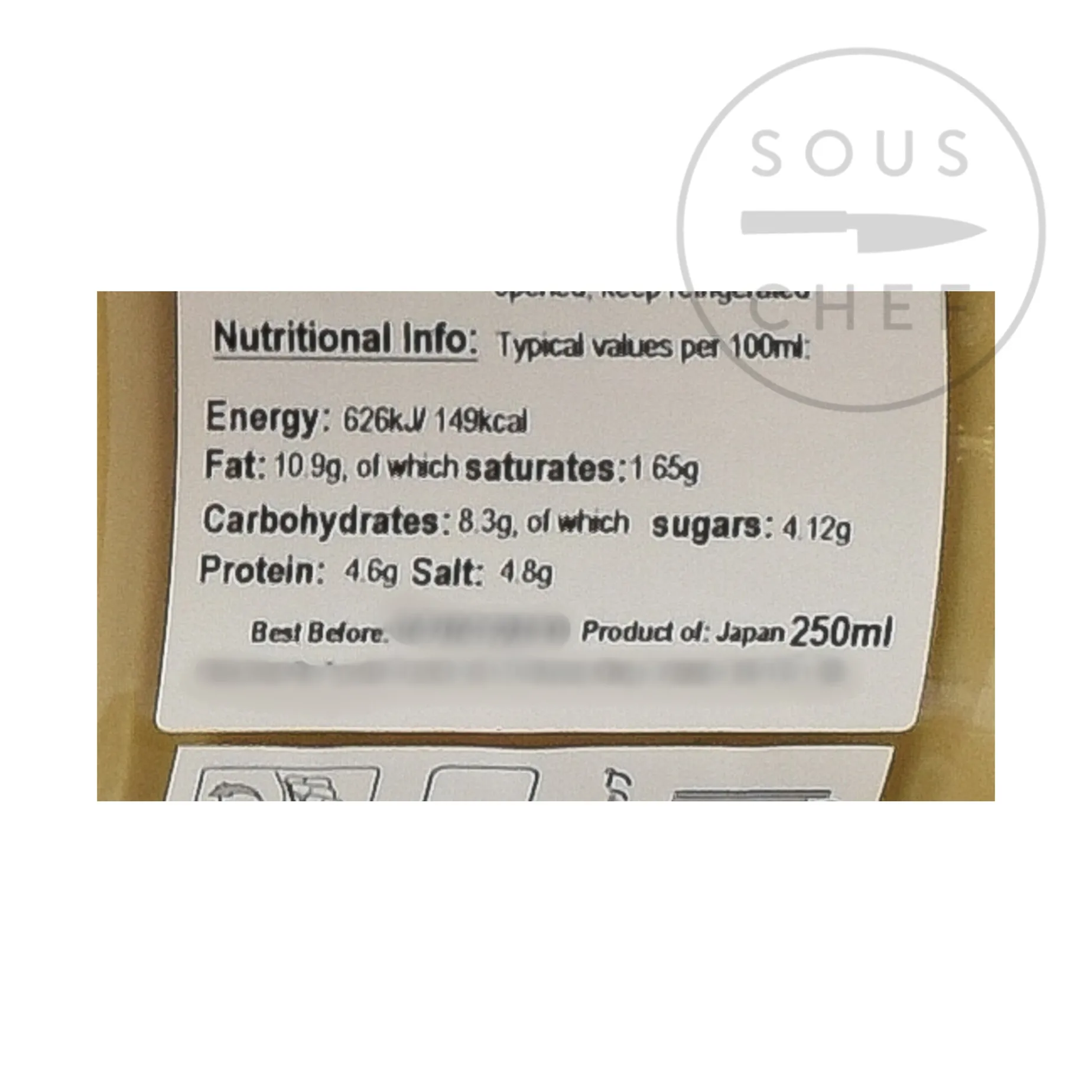 Product formulations and details may change. For the latest ingredients and allergen information always check product packaging prior to consumption. Ingredients: water, sesame paste, distilled vinegar, soybean and rice paste, sesame oil, soy sauce (soybeans, wheat, water, salt), salt. Fructose syrup, flavour enhancer: E621 E631, sugar, carrageenan, yeast extract, tamarind seed gum, flavours, spices (ginger, garlic, white pepper).