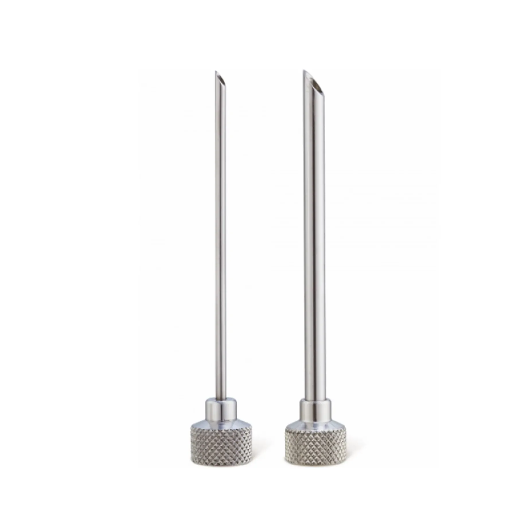 Injector needles attach to the Master Whipper for precise application. There are two sizes to choose from, depending on your intended use. The needles give you excellent control for filling and piping tasks.