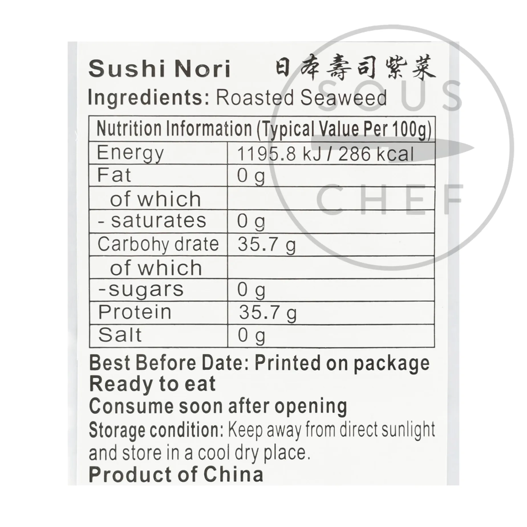 Nori sheets come in different grades. You can usually tell which is which from the colour of the packaging. Here at Sous Chef we have green, silver and gold grade nori sheets.