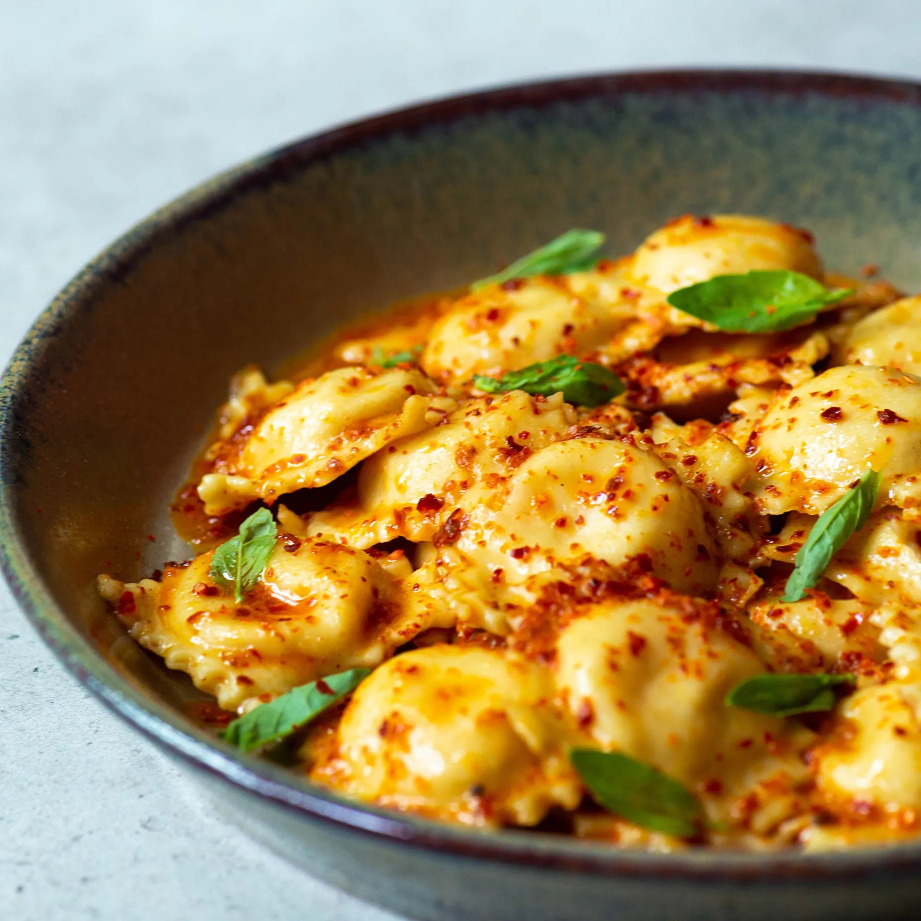 Each ravioli measures 40x40mm. The ravioli tray is non-stick, easy to clean and an efficient way to make perfect batches of filled pasta.