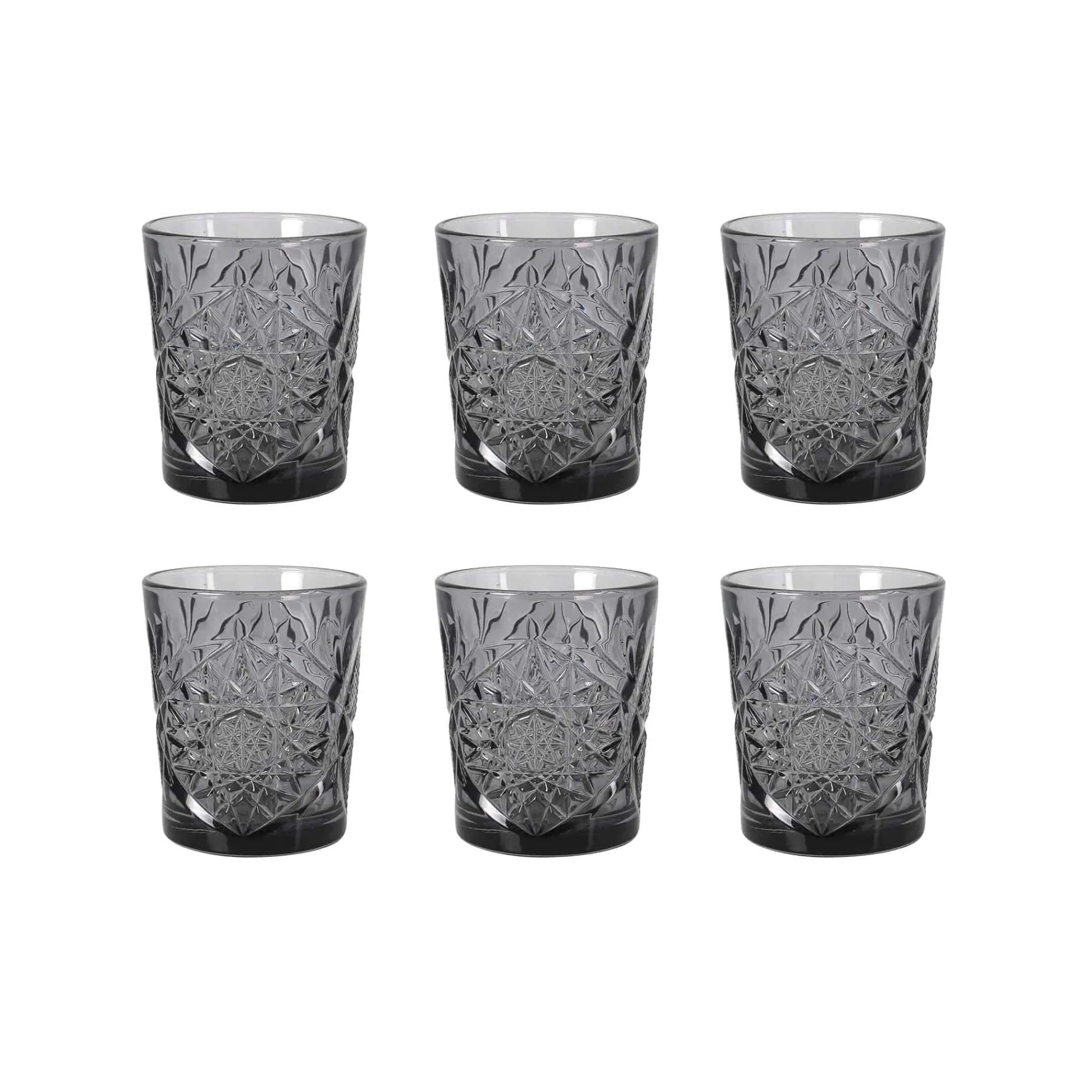 These smoky grey Hobstar tumblers have an elegant, timeless appeal. Available in a set of six, they’re a striking addition to your home bar.