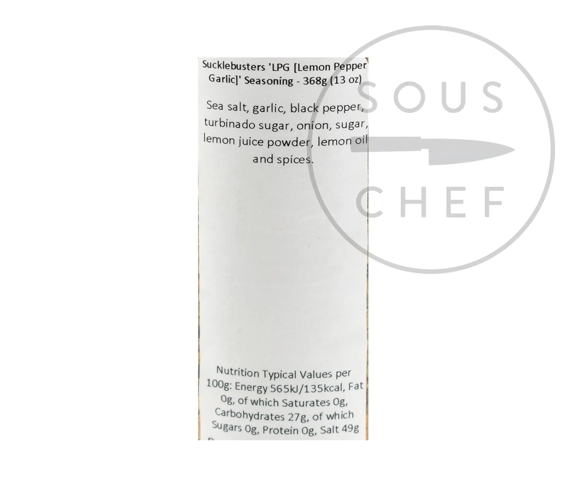 Product formulations and details may change. For the latest ingredients and allergen information always check product packaging prior to consumption. Ingredients: Sea salt, garlic, black pepper, turbinado sugar, onion, sugar, lemon juice powder, lemon oil and spices.