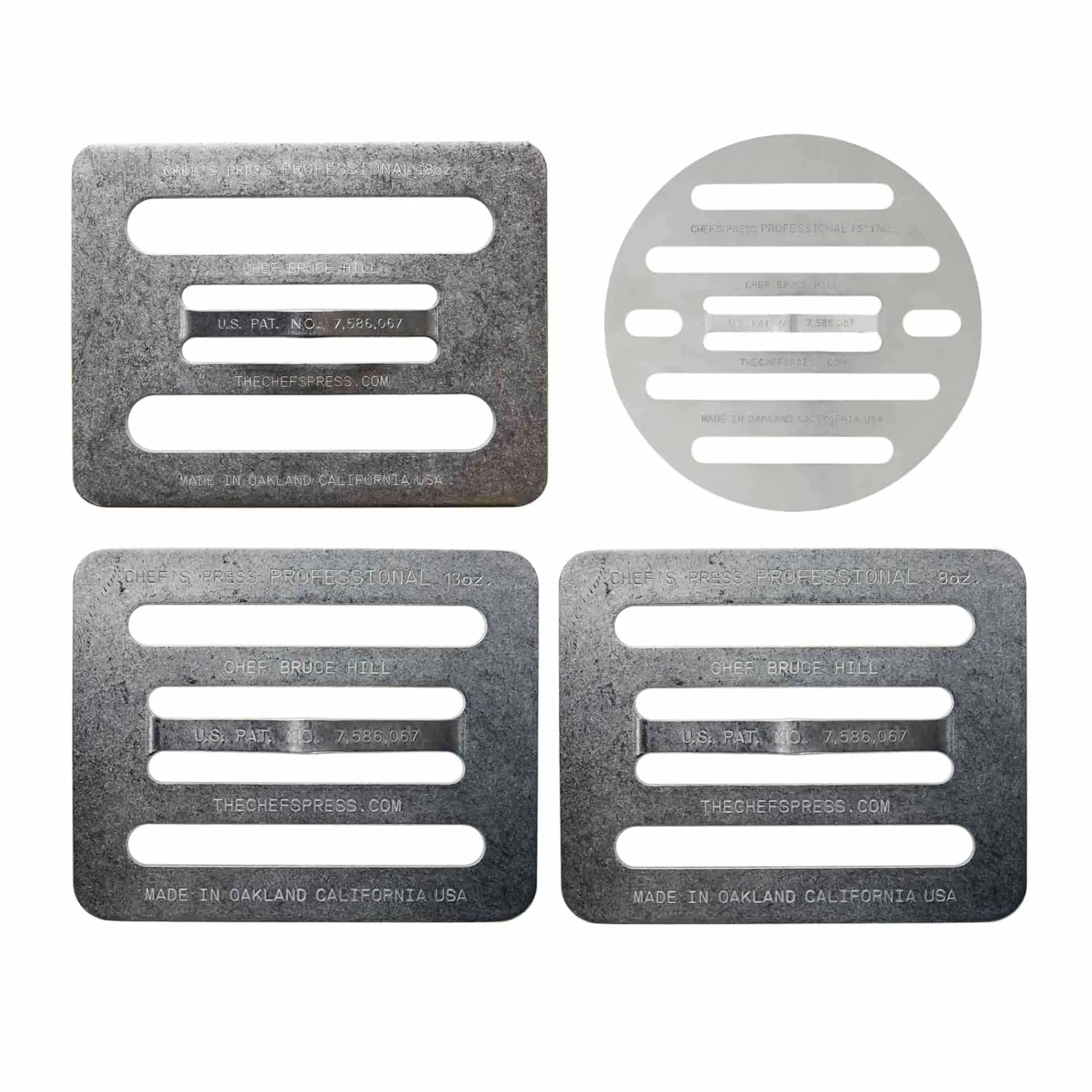 Designed by Chef Bruce Hill while he was working in a tiny kitchen of Bix Restaurant in San Francisco. The stainless steel weights increase the area of your food in contact with the pan. The result: your quickest sear yet and even browning. Plus, chemical changes that translate to flavour.