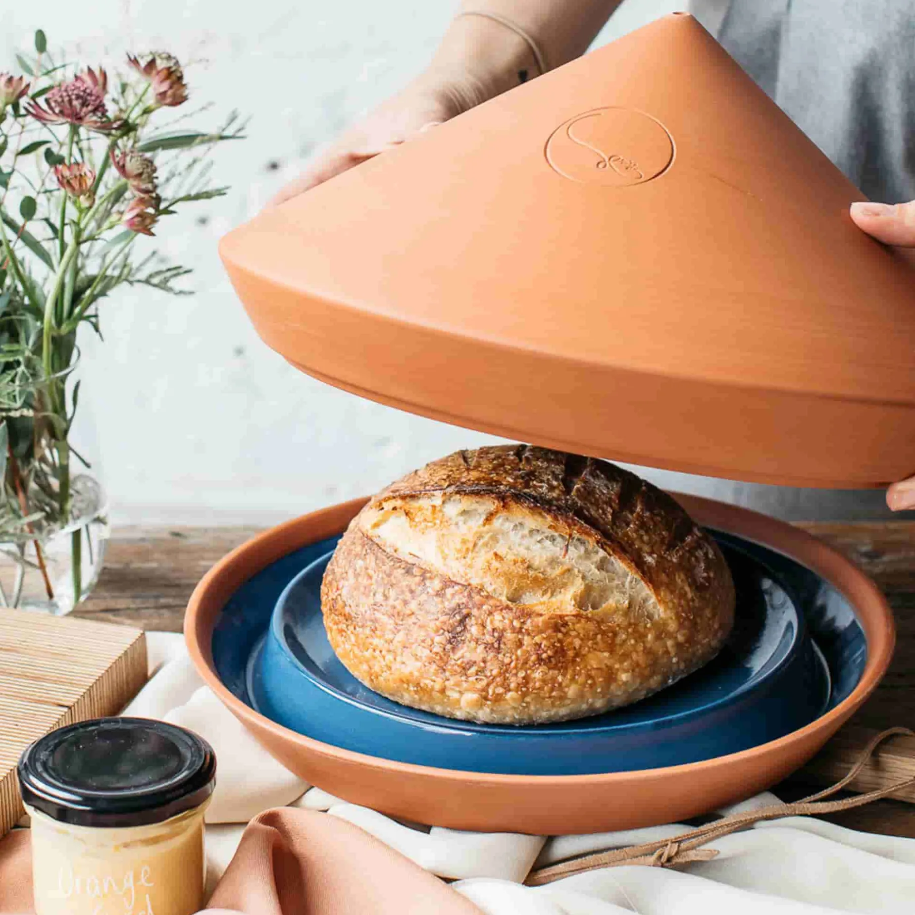 Designed and developed in Britain, the Spring Oven is a terracotta ovenware pot for baking bread with the use of steam. Baking with steam helps your dough rise and develop a crunchy crust, but it’s not always easy to create a suitably humid environment in a conventional oven. The Spring Oven solves that problem with a water channel in the base that generates steam while you bake. The sloping lid focuses heat close to your bread and also allows condensed water to run back into the channel.