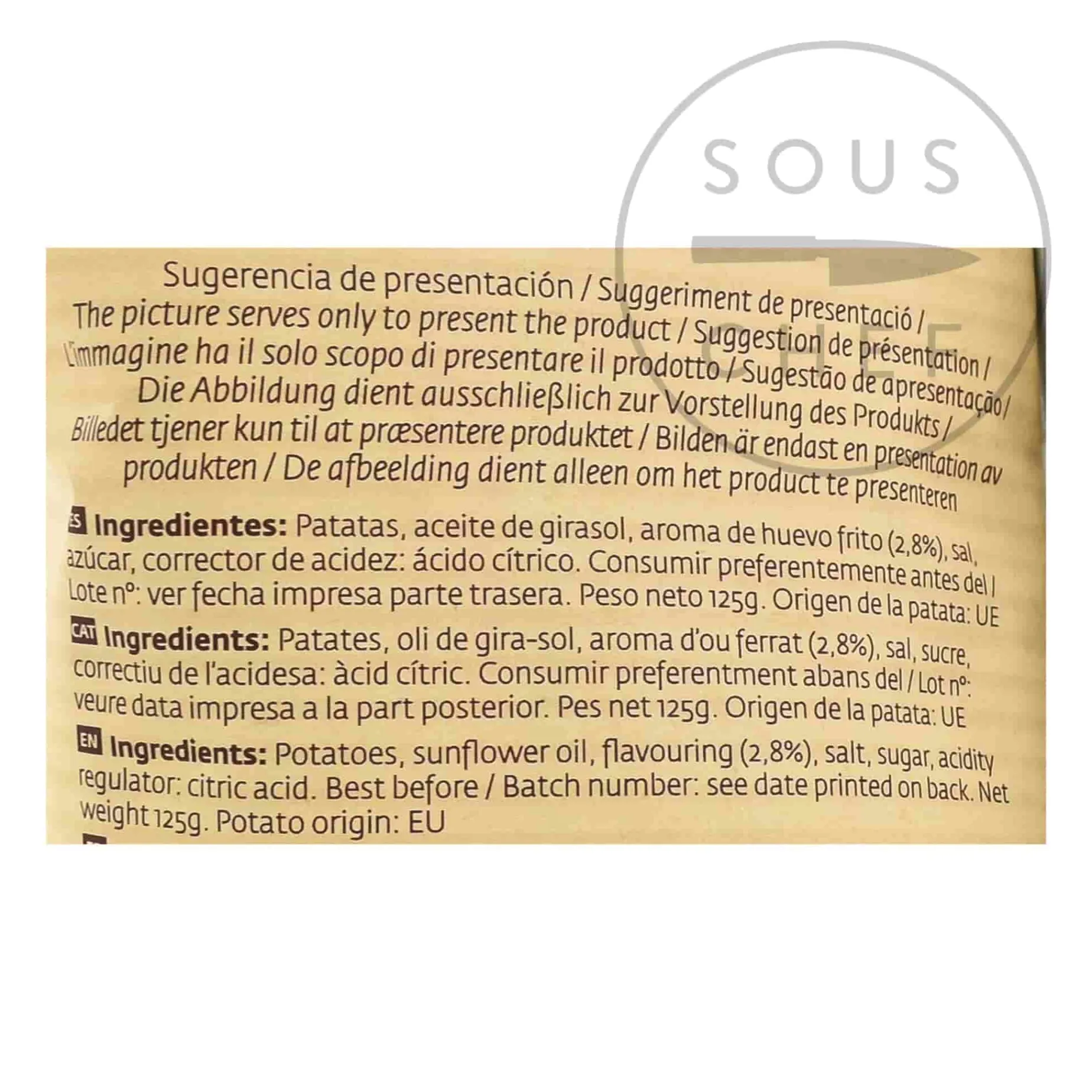 Product formulations and details may change. For the latest ingredients and allergen information always check product packaging prior to consumption. Ingredients: Potatoes, sunflower oil, flavouring (2.8%), salt, sugar, acidity regulator: citric acid.