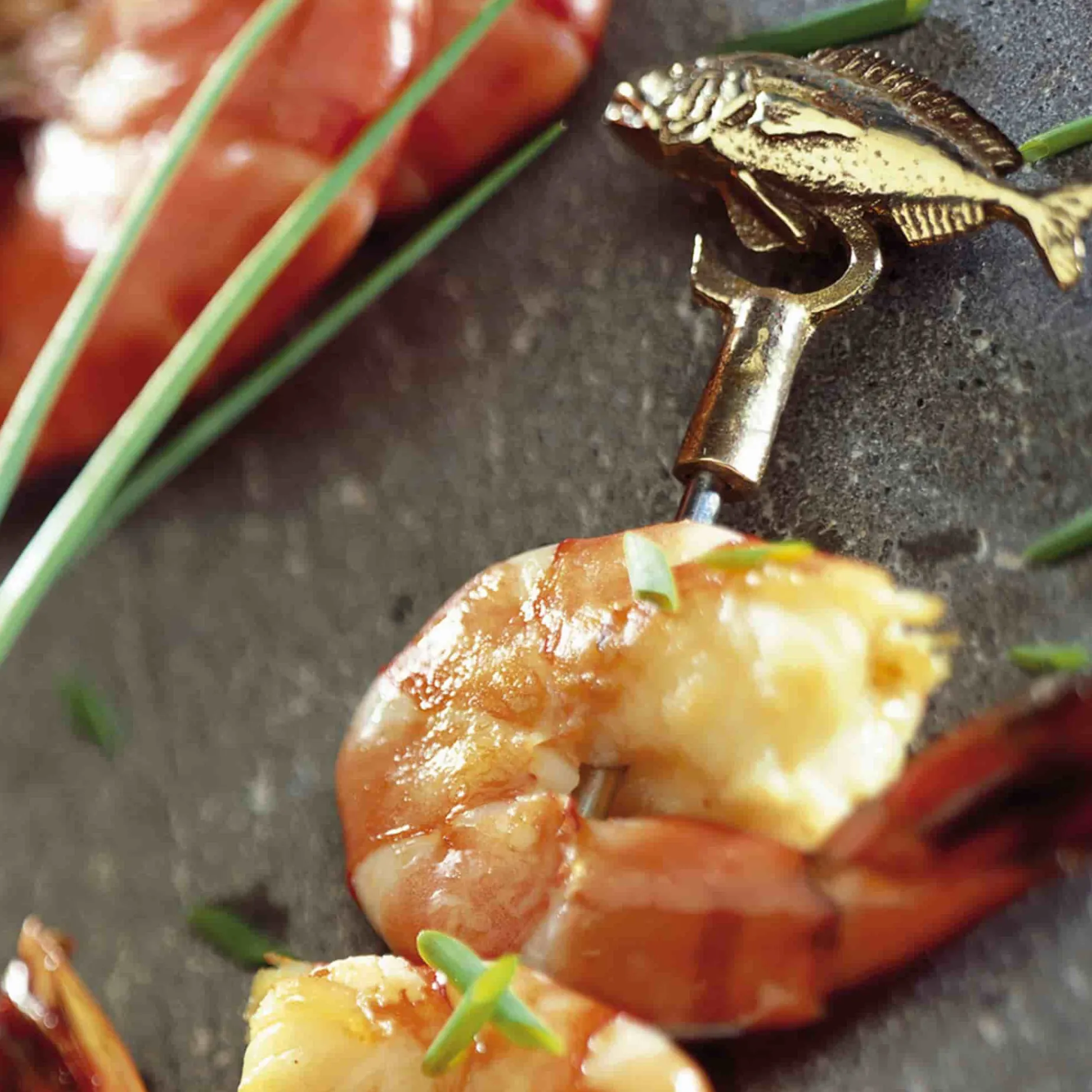 Use Triangle’s steel skewers to make kebabs and chicken satay. Presented as a set of four, the skewers have a sharp tip for skewering meat and vegetables. The skewers are topped with animal heads made from solid brass. Each one is different – choose from the rooster, fish, bull or ram.