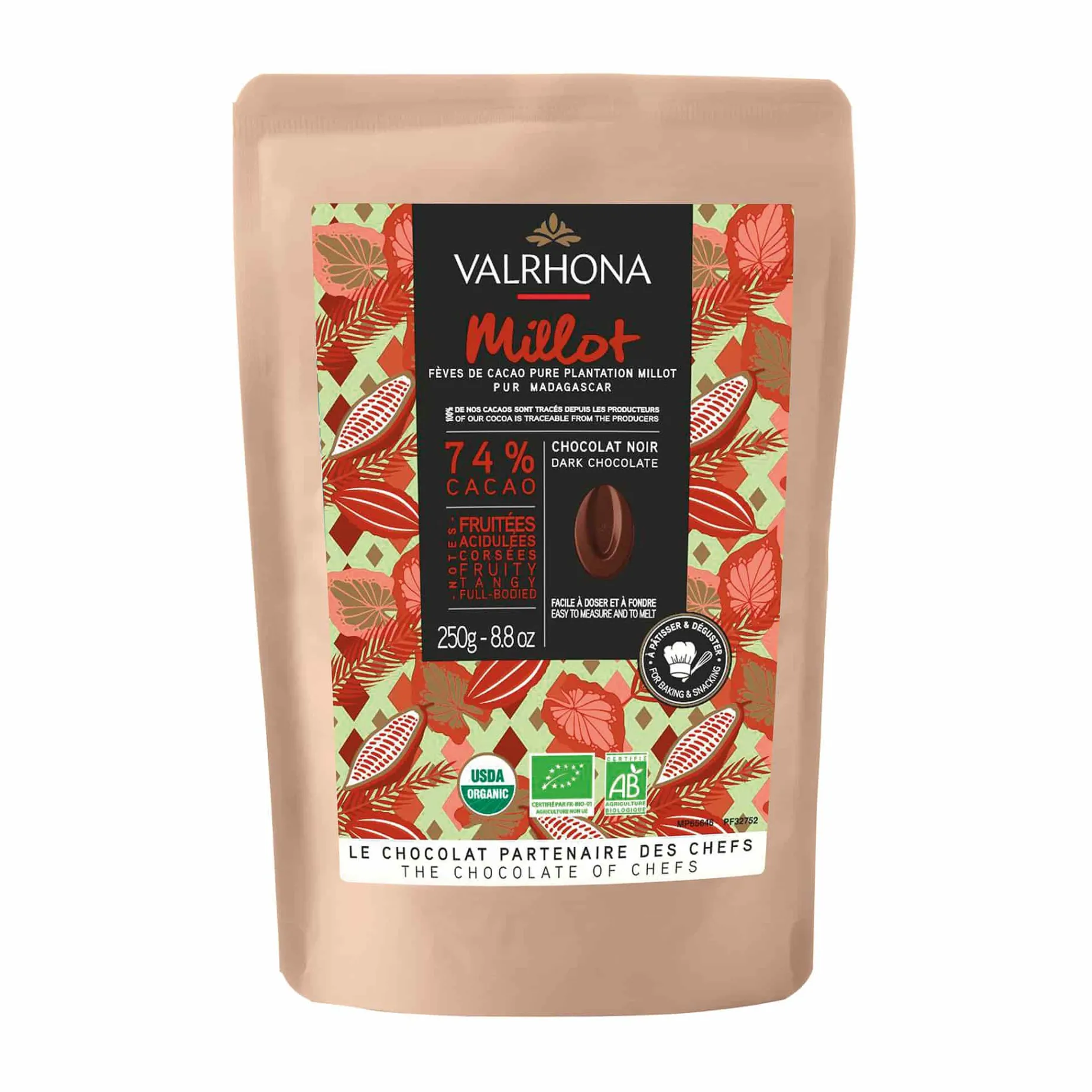 Valrhona Millot 74% 'Pure' Single Origin Organic Chocolate Couverture, 250g